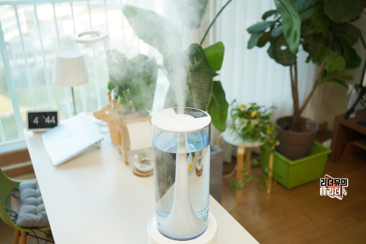 그리고 상단부의 수조통은 물의 수위를 직관적으로 알 수 있는 클리어한 수조통으로 되어 있고 용량은 무려 4.3L의 대용량 수조통입니다. 시간당 최대 350ml의 강력한 가습 성능까지 가지고 있어 공간이 넓은 곳도 충분히 커버가 가능한 대용량 가습기 입니다.