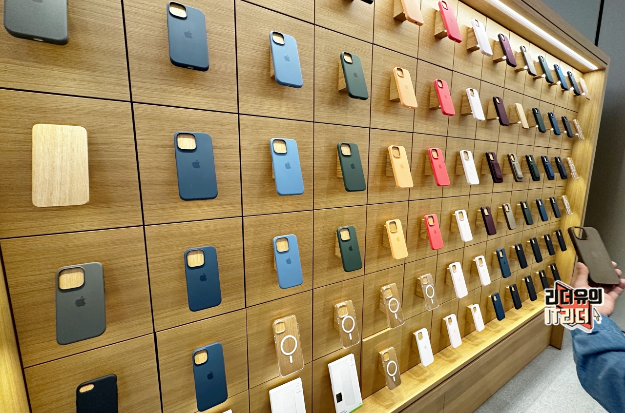 그리고 아이폰15 용 실리콘 케이스도 전시되어 있습니다. 총 8가지의 색상 라인업이 있는데요. 선택한 아이폰15 색상과 매칭해서 최적의 조합을 하시면 될 것 같습니다.