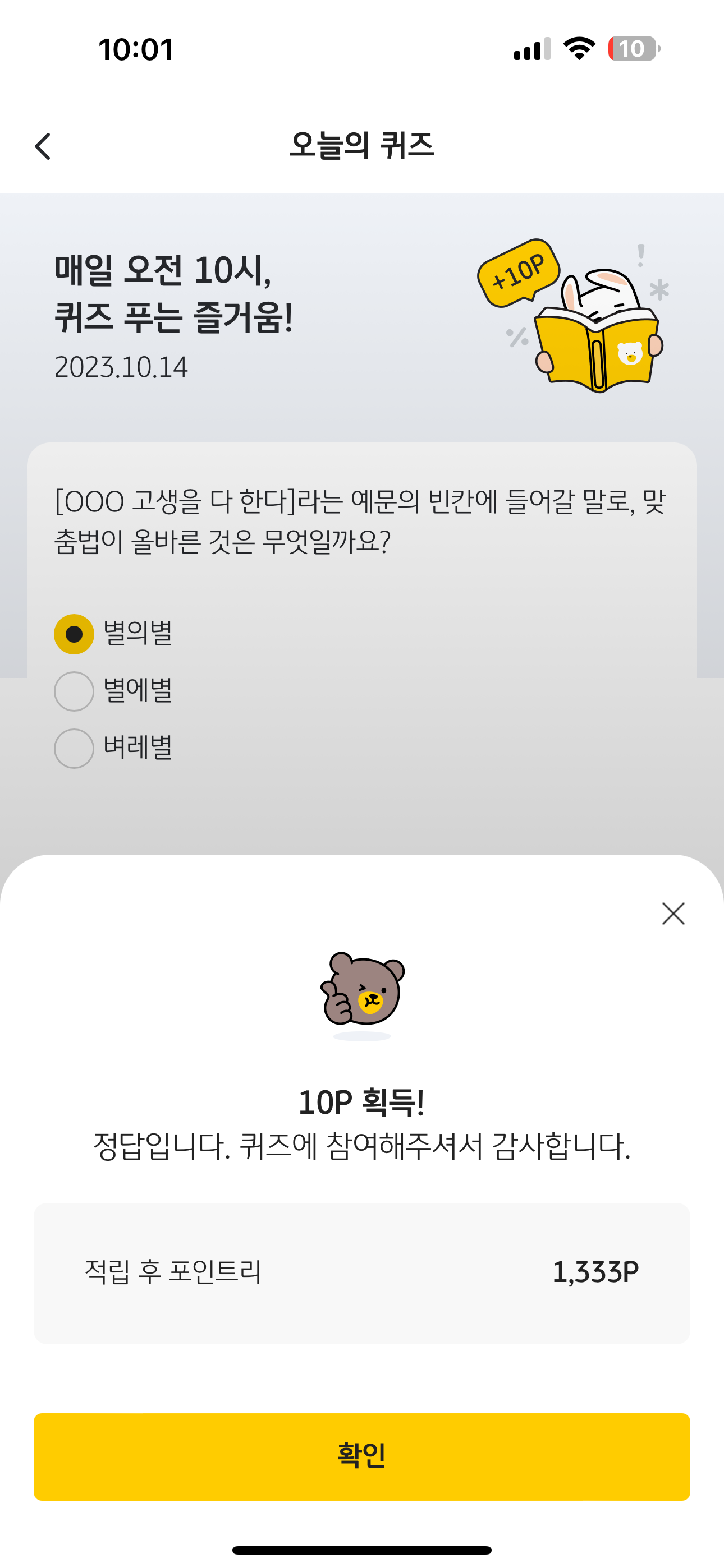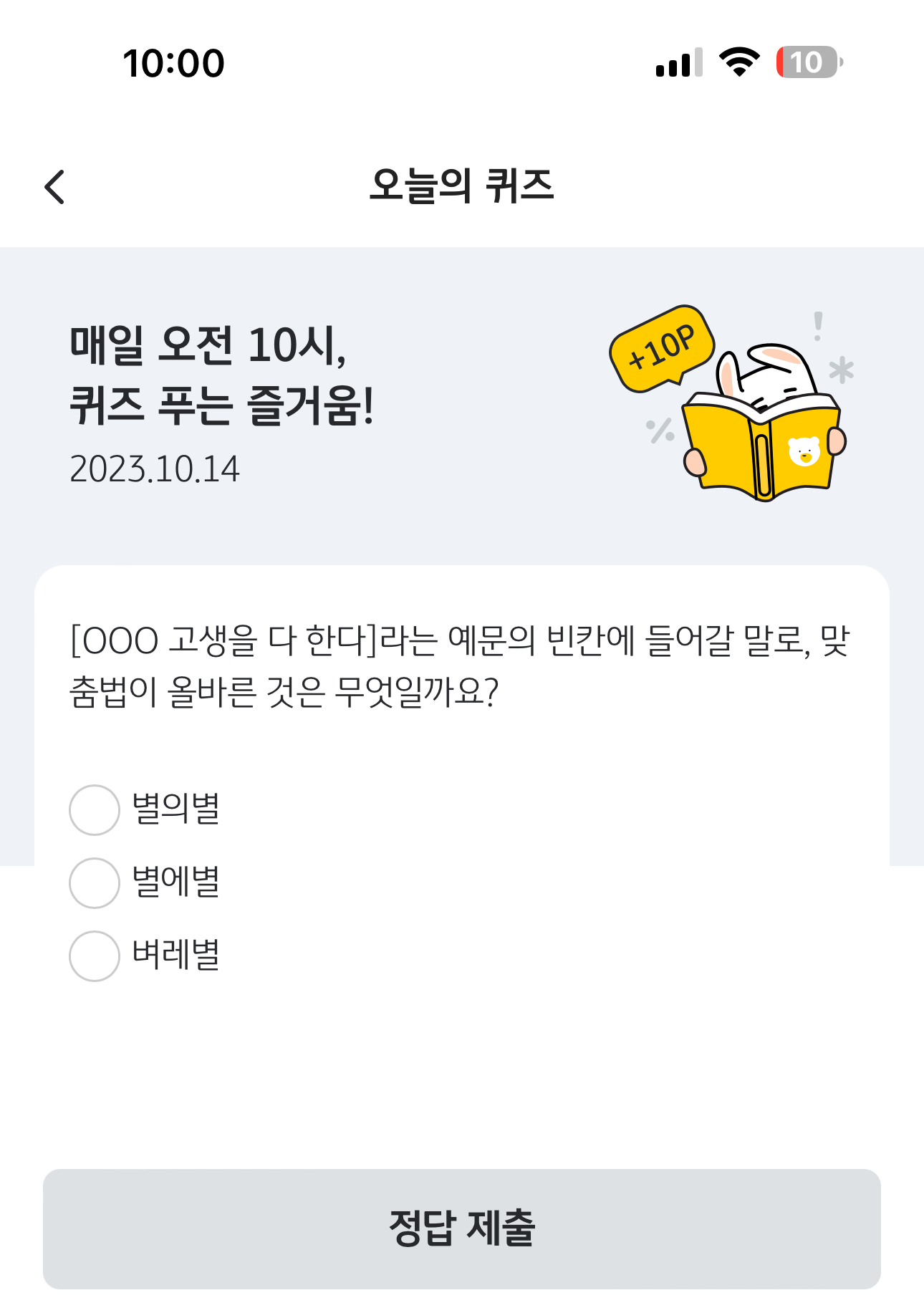 KB Pay 오늘의 퀴즈 정답은 별의별 입니다