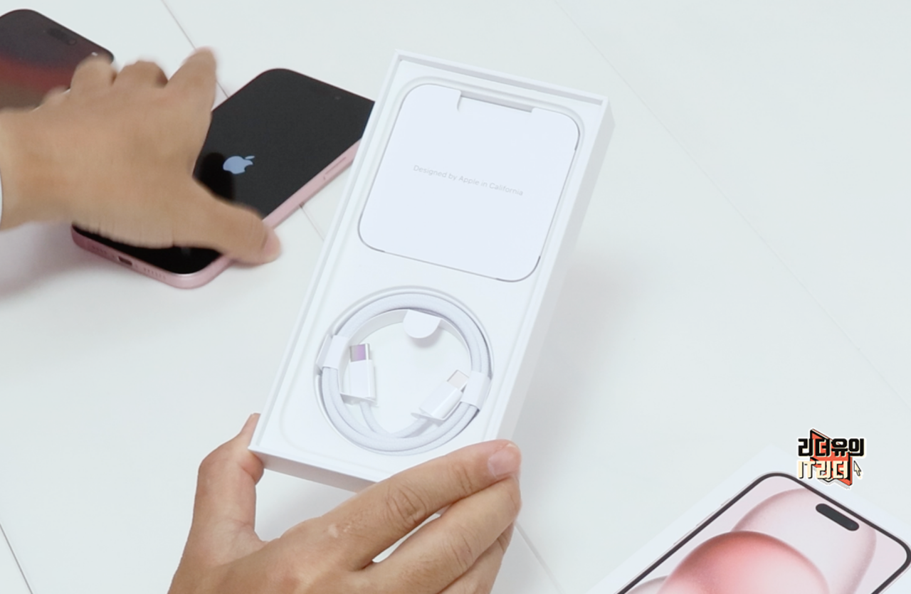 아이폰15 플러스 구성품이 들어 있는 모습입니다.