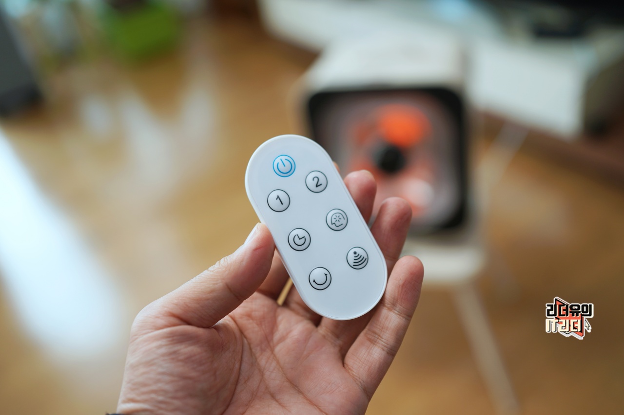 에코제트 하이라이트 전기히터는 멀리서도 쉽게 컨트롤 할 수 있게 리모컨 사용을 지원합니다. 1, 2 단계로 조절이 가능하고 시간 타이머, AI 모드, 회전, 인체감지를 버튼으로 컨트롤 할 수 있습니다.