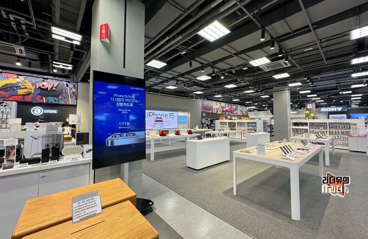 그리고 아이폰15. 아이폰15 프로 시리즈가 전시되어 있는 공간에도