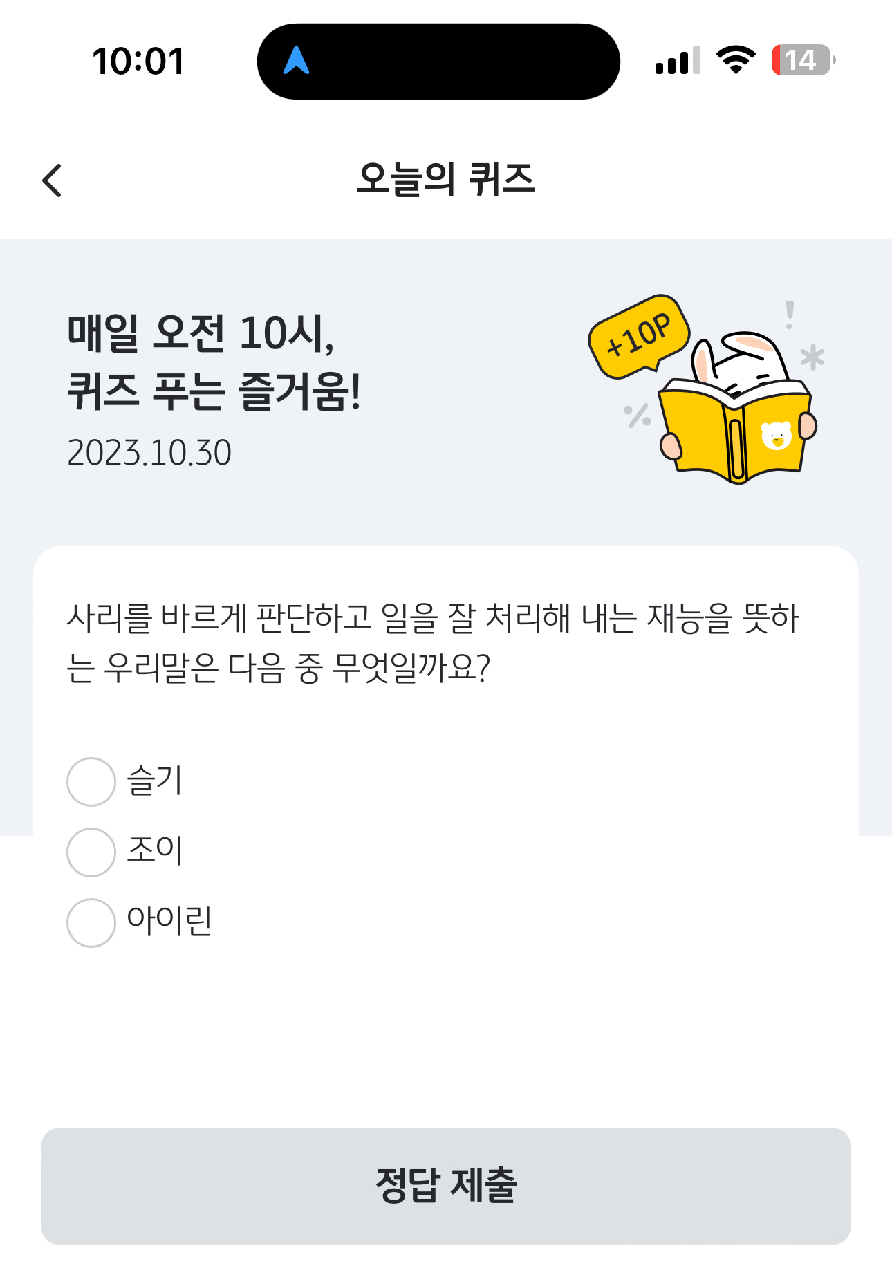 KB Pay 오늘의 퀴즈 10월 30일 정답(사리를 바르게 판단하고 일을 잘 처리해 내는 재능을 뜻하는 우리말은 다음 중 무엇일까요?)
