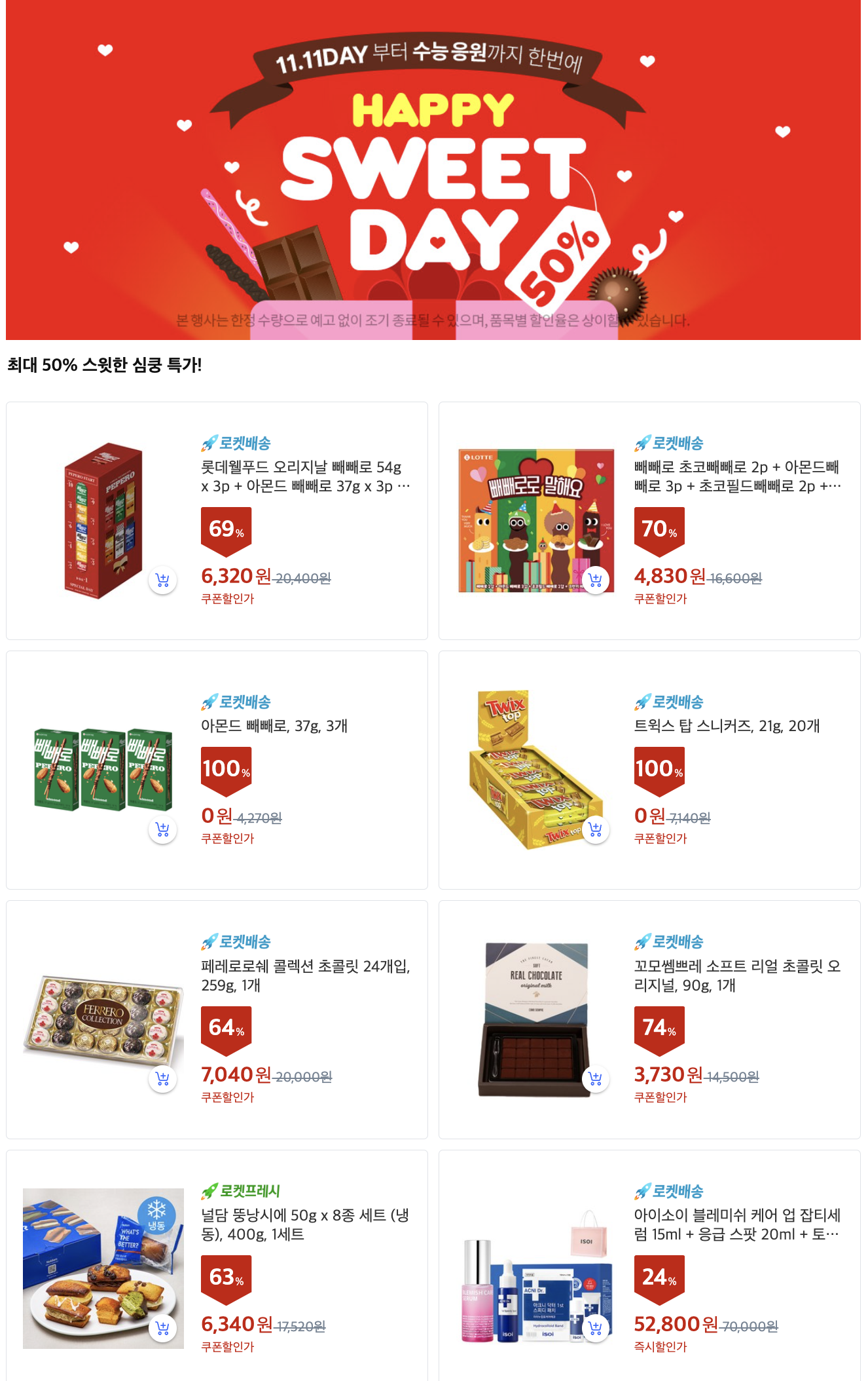 * 쿠팡 빼빼로데이 할인 행사 바로가기!