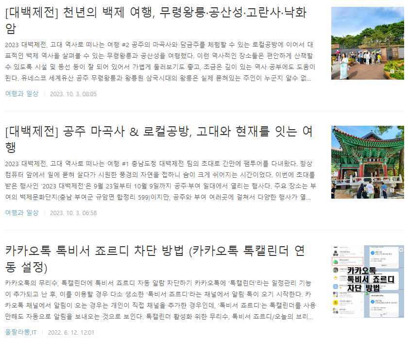 산돌구름 웹폰트가 적용된 화면입니다. 제목부터 카테고리 서비스 이름 등 다 변경이 된 것을 알 수 있습니다.