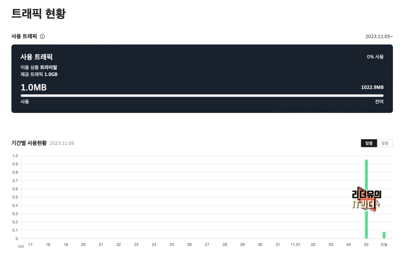 그리고 사용 현황에 대한 트래픽도 확인할 수 있습니다. 데이터 사용량이 얼마나 되는지 알 수 있으니 자신의 사이트 운영 상황에 맞게 산돌구름 웹폰트 서비스를 이용하시면 됩니다.