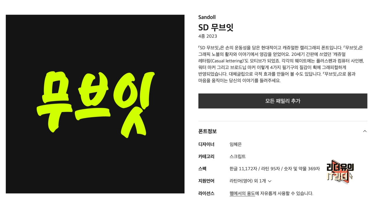 오픈 소소의 웹폰트는 종류가 한정적이지만 산돌구름 웹폰트 서비스는 2023년 11월 기준 무려 800종이 넘는 폰트를 지원하고 있고 폰트 수는 계속 확대될 예정이라고 합니다. 즉, 디자이너나 사용자가 원하는 다양한 스타일의 폰트를 자유롭게 웹사이트에서 구현할 수 있습니다. 그리고 누구나 1달 간 무료로 사용해 볼 수 있는 트라이얼 버전도 있으니 확인해 볼 수 있습니다. 너무나 감각적인 폰트들이 많아서 고르는 재미가 있습니다.