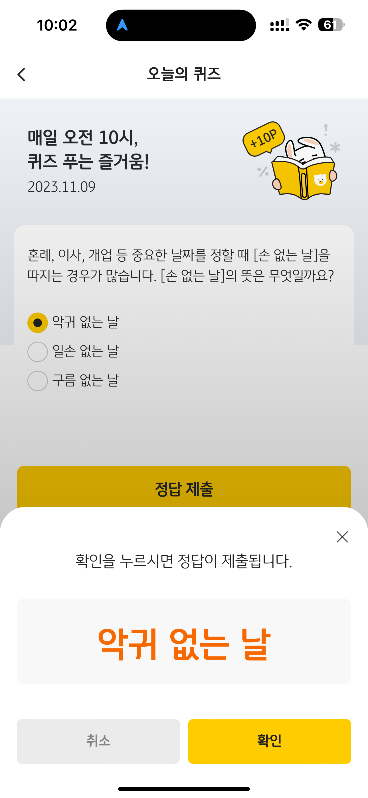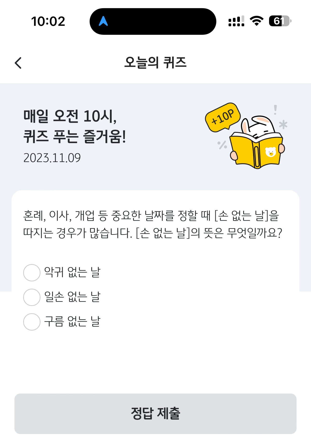 KB Pay 오늘의 퀴즈 정답은 악귀 없는 날 입니다