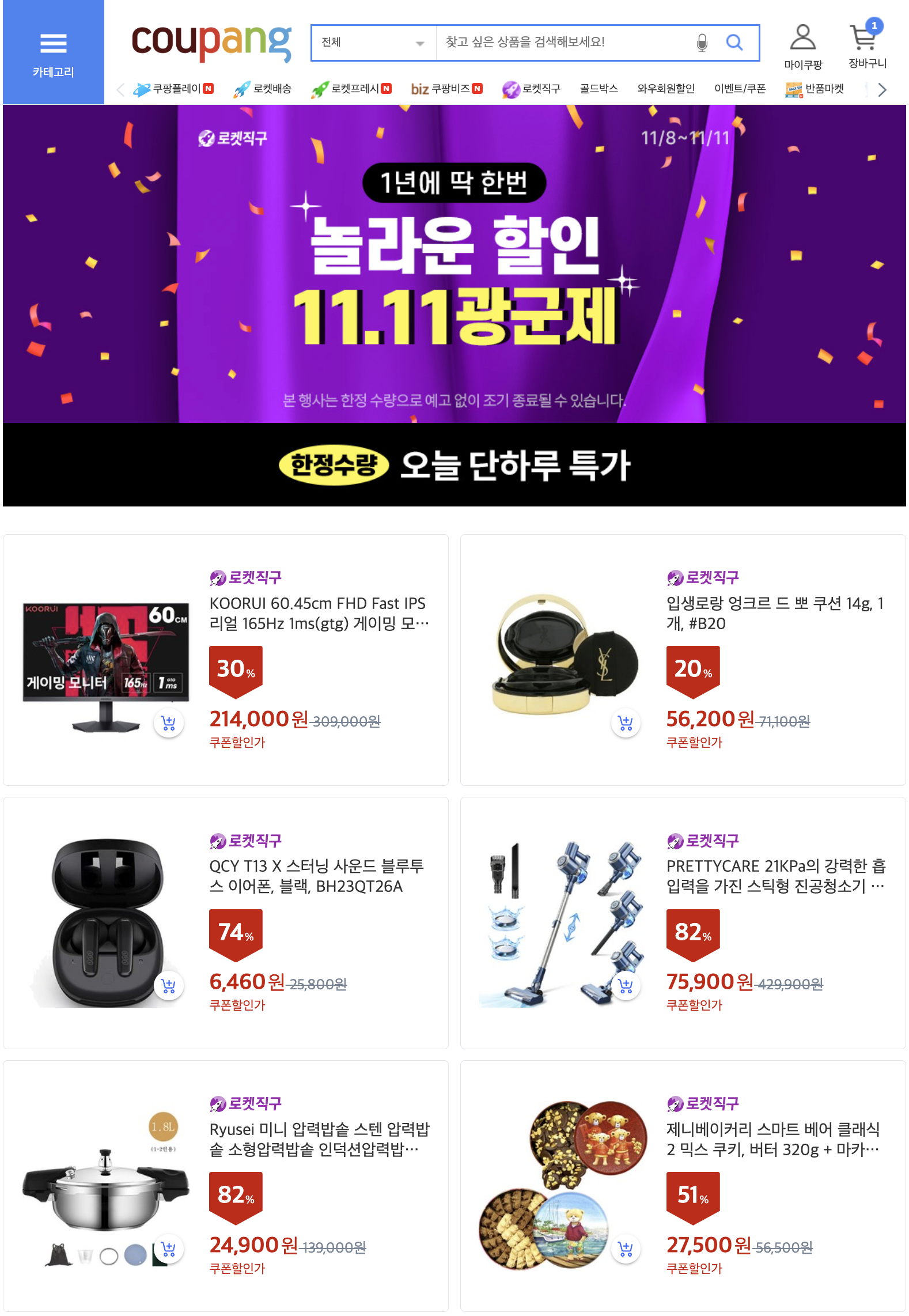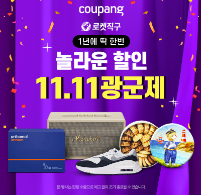 쿠팡도 광군제 시즌에 맞춰 파격적인 할인 행사를 하고 있습니다. 쿠팡은 로켓직구 서비스를 하고 있는데요. 그래서 중국의 업체들과 파격적인 가격으로 할인 행사를 하고 있습니다. 한정된 수량으로만 판매되고 있으니 자신에게 필요한 제품이 있는지 확인해 보시면 좋습니다.