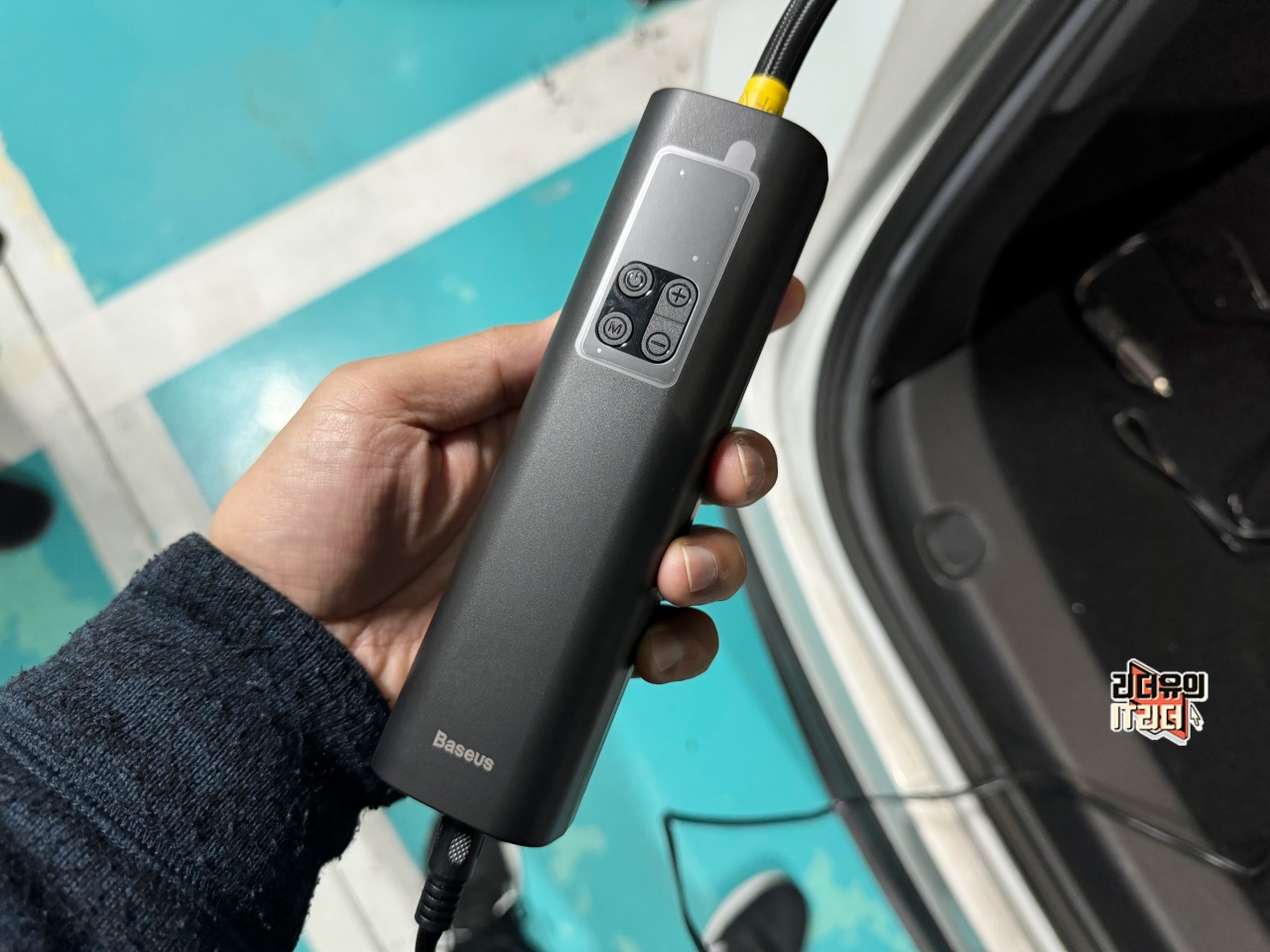 참고로 제가 사용한 베이스어스 타이어 공기압 주입기는 무선 방식이 아닙니다. 이렇게 시거잭에 연결해서 사용하는 방식인데요. 전원선을 연결해야 하는 불편한 점은 있지만 힘이 좋고 충전을 하지 않아도 된다는 점은 좋습니다. 즉, 장단점이 있으니 이런 것도 있다는 것만 참고하시면 될 것 같습니다.