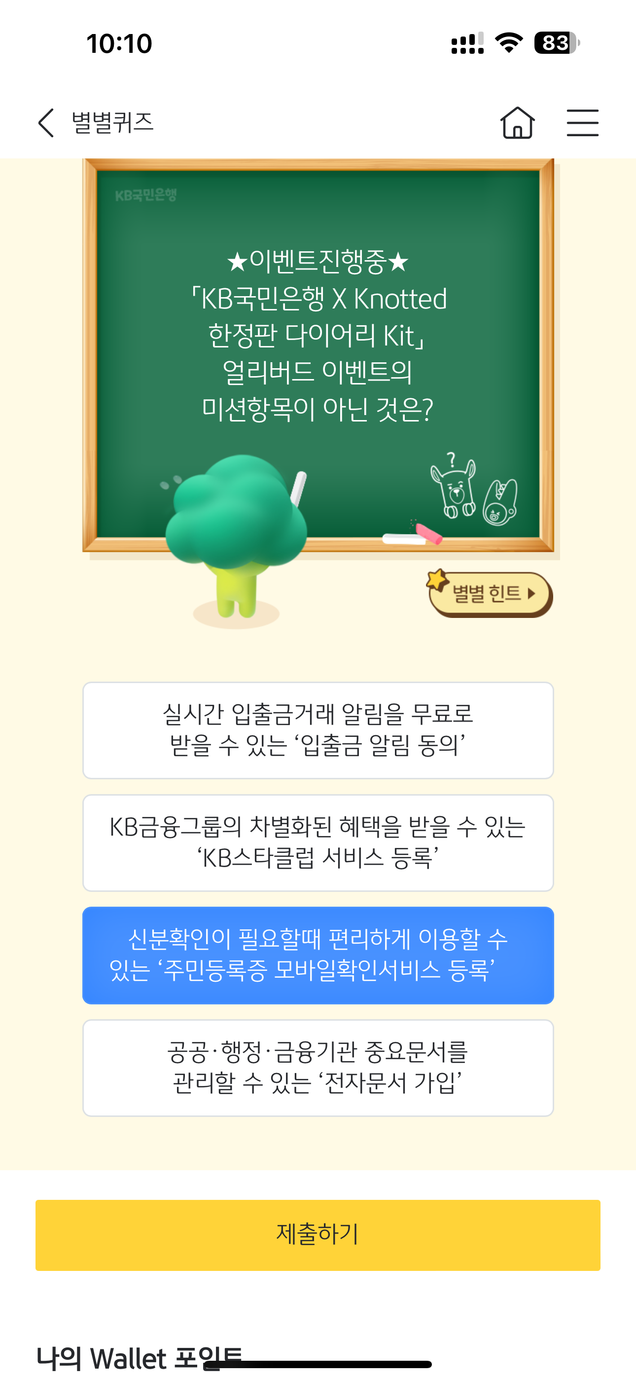 KB스타뱅킹 별별퀴즈 정답은 신분확인이 필요할때 편리하게 이용할 수 있는 주민등록증 모바일확인서비스 등록 입니다