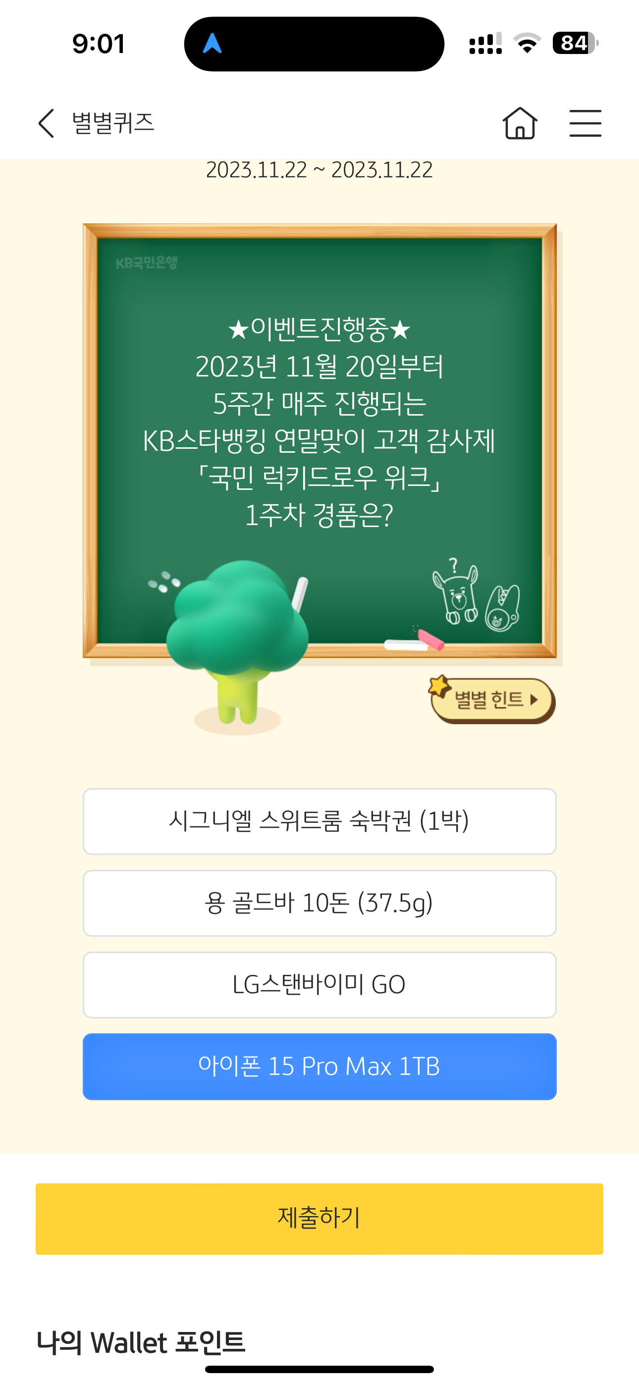 KB스타뱅킹 별별퀴즈 정답은 아이폰 15 Pro Max 1TB 입니다