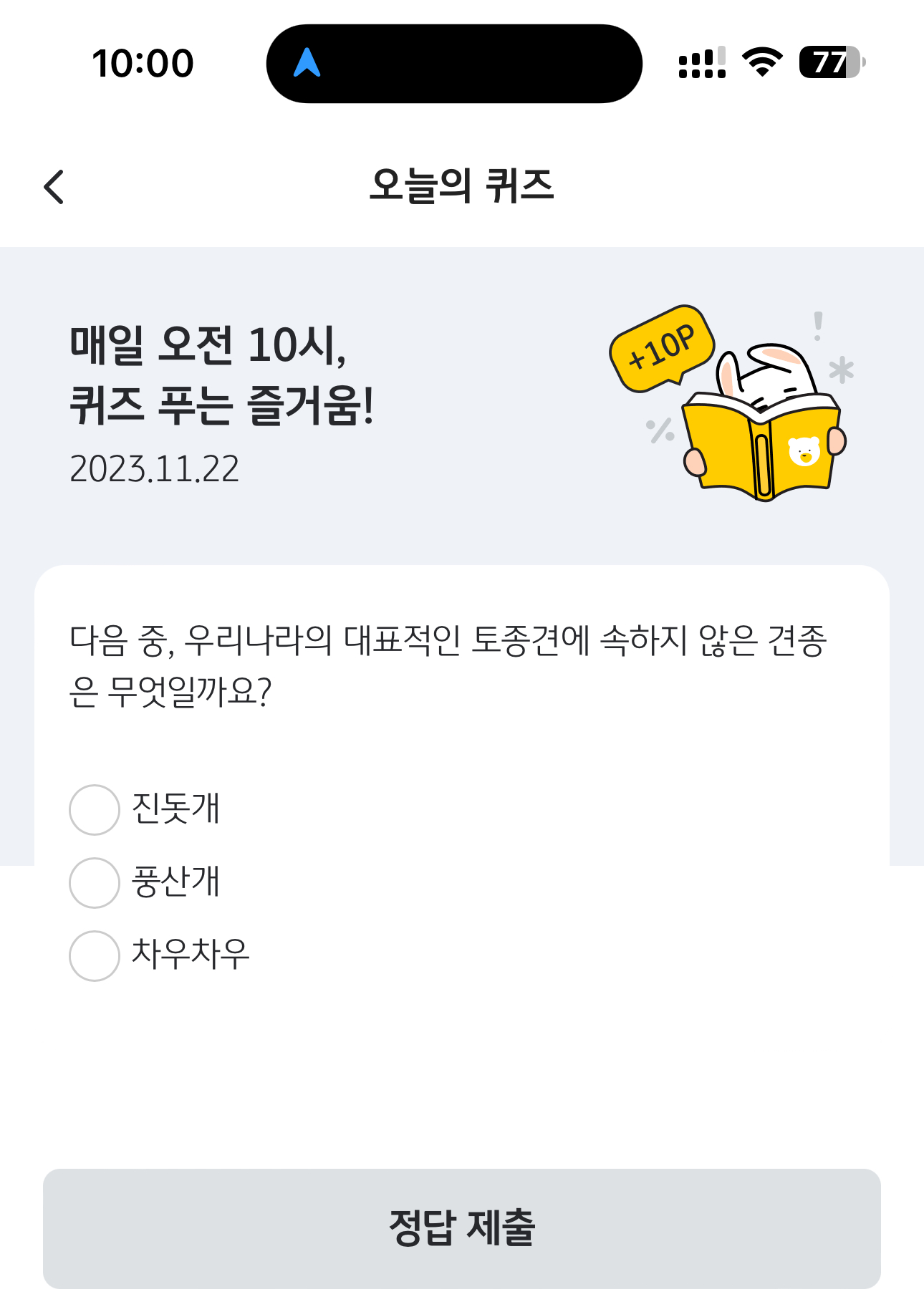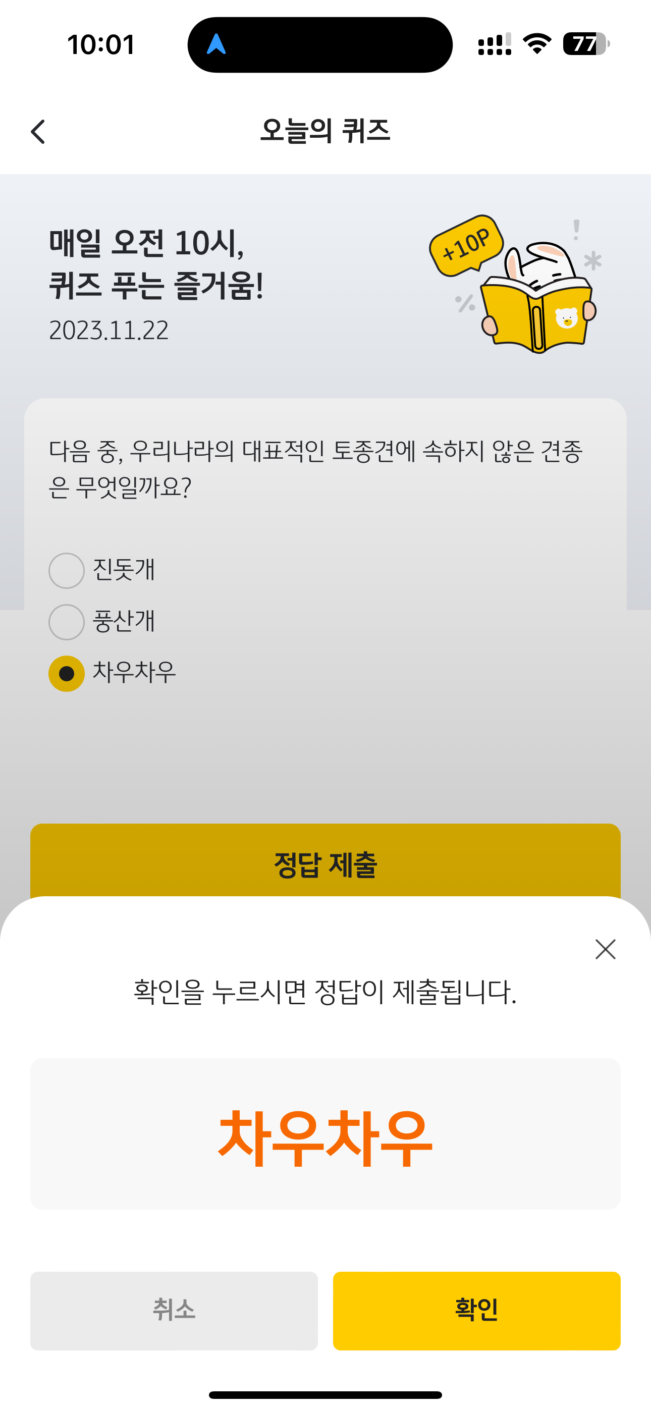 KB Pay 오늘의 퀴즈 정답은 차우차우 입니다