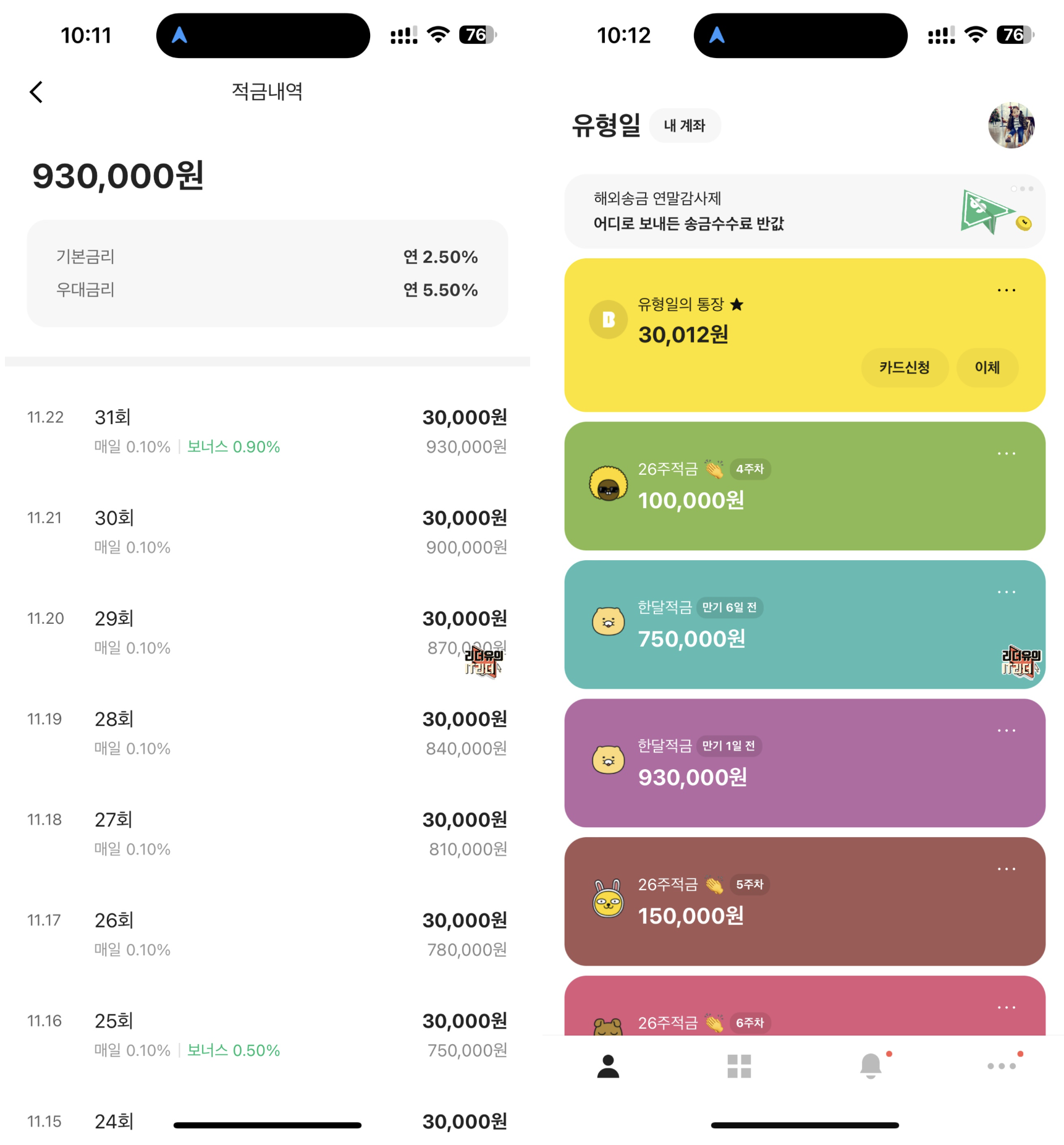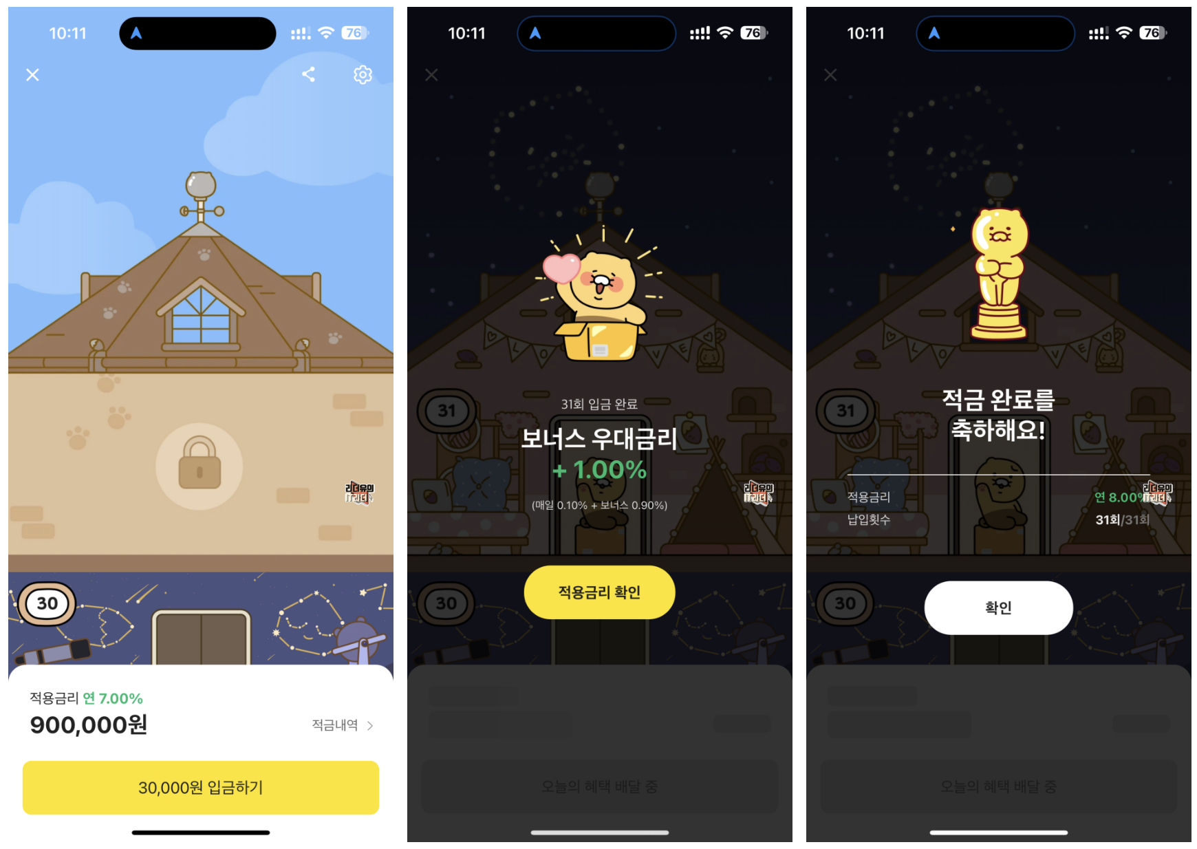 저는 매일 30,000원씩 31일을 넣어 한달적금을 완료했습니다.