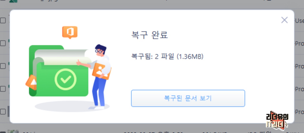 복구 할 파일을 찾았다면 지정해서 복원하기를 할 수 있습니다.