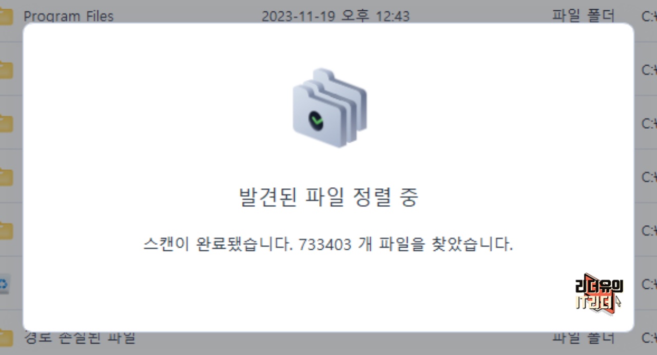 스캔이 완료되면 발견된 파일 개수를 볼 수 있고 파일 정렬이 됩니다.