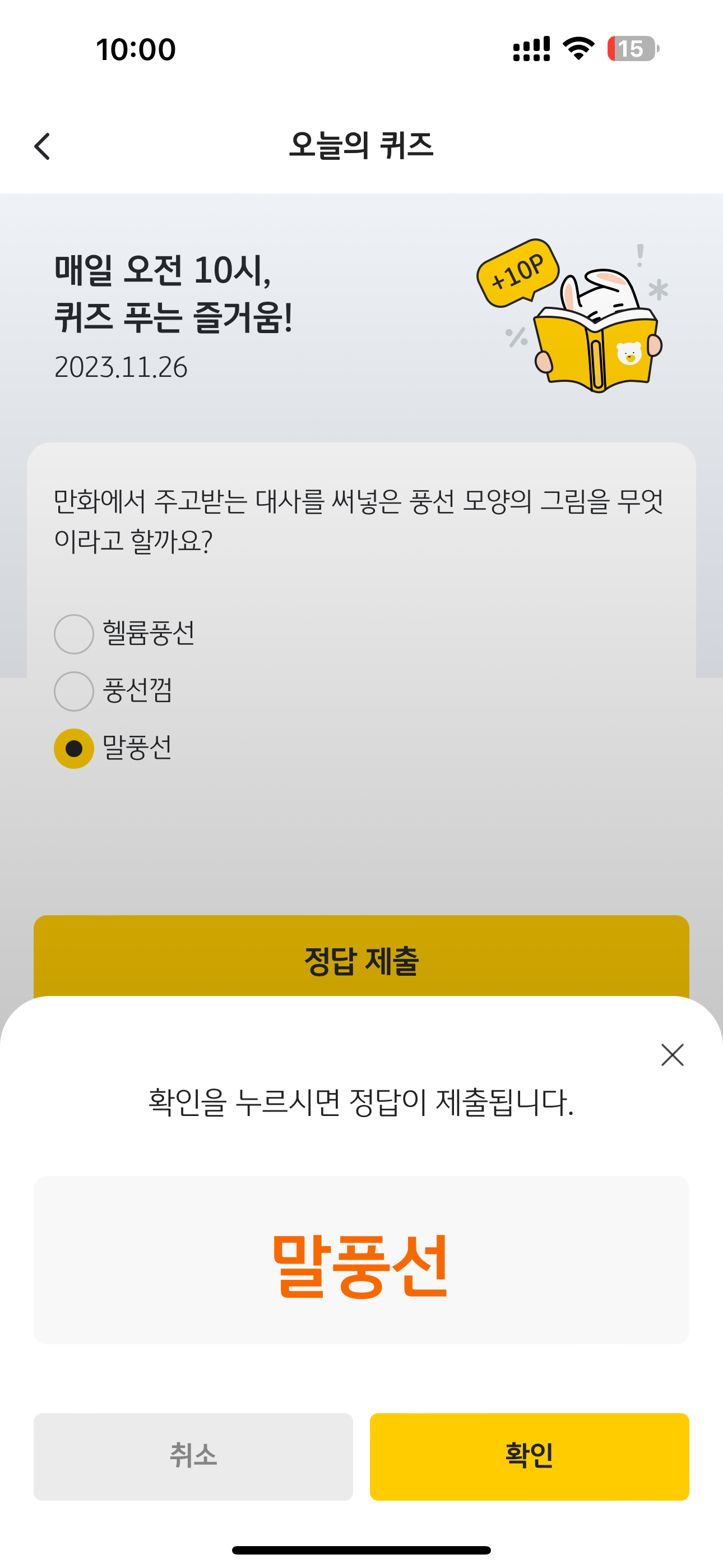 KB Pay 오늘의 퀴즈 정답은 말풍선 입니다
