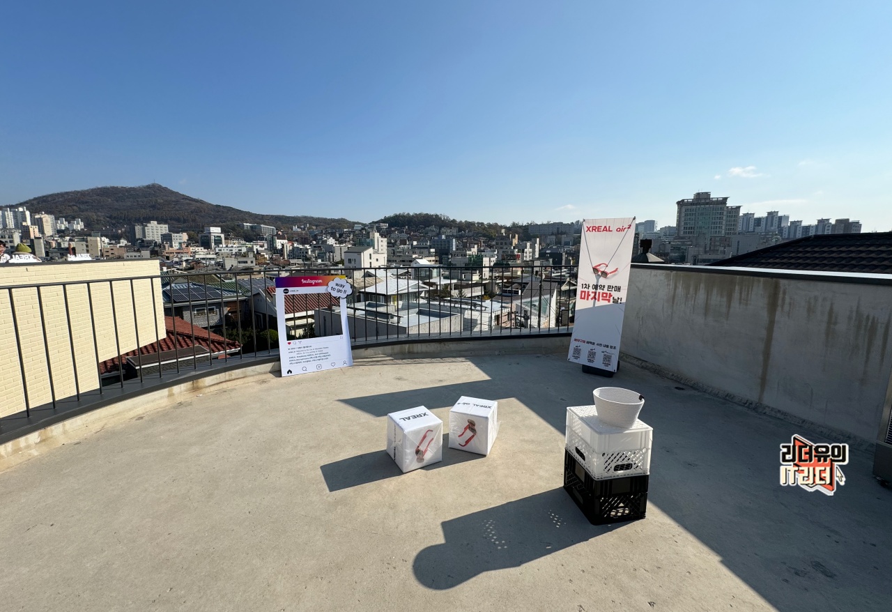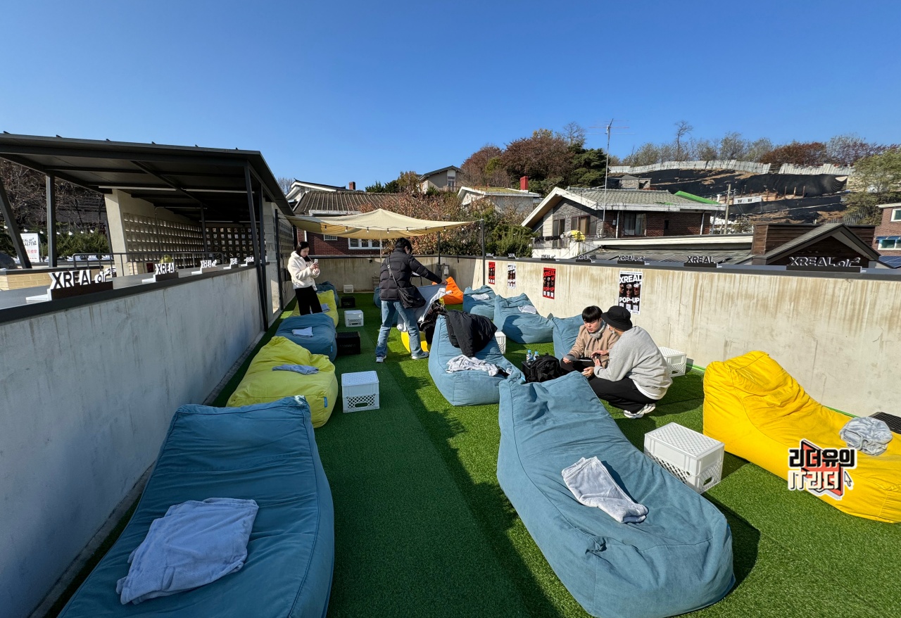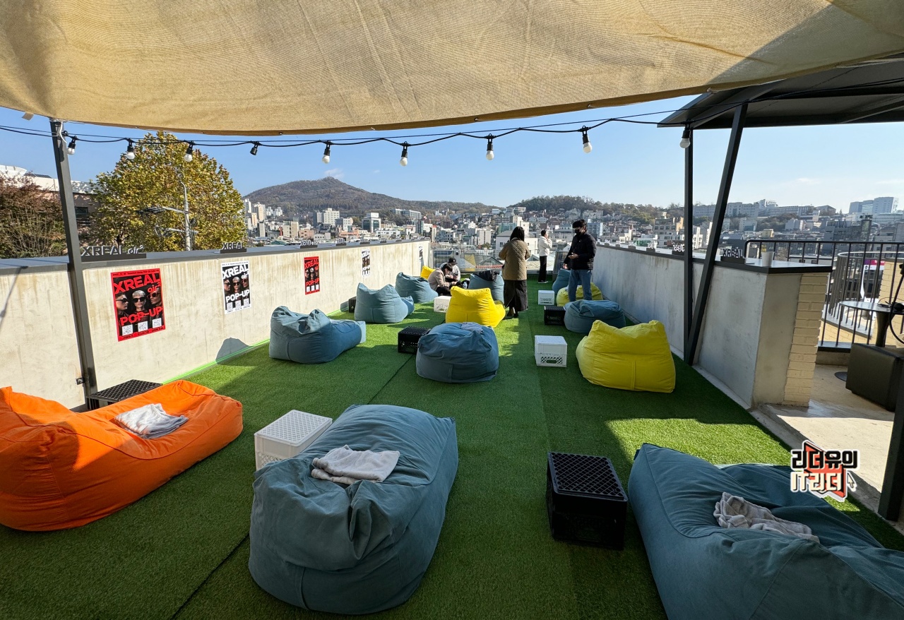 옥상에서는 따뜻한 햇살과 함께 엑스리얼 에어2와 엑스리얼 빔을 체험할 수 있는 공간이 마련되어 있었습니다.