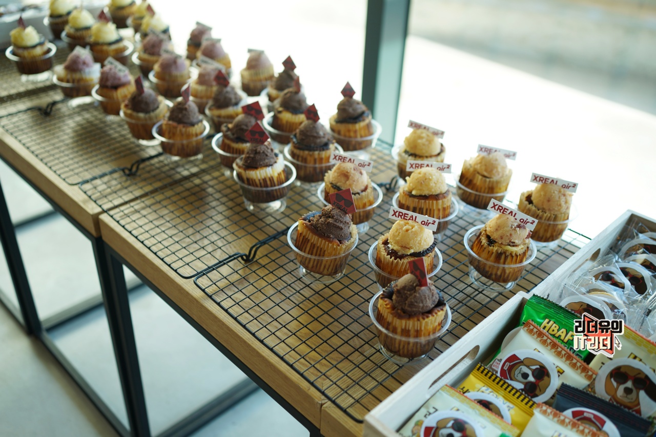 2층 공간에는 엑스리얼 에어2와 함께 즐길 수 있는 커피, 음료, 간단한 다과들이 준비되어 있었습니다.