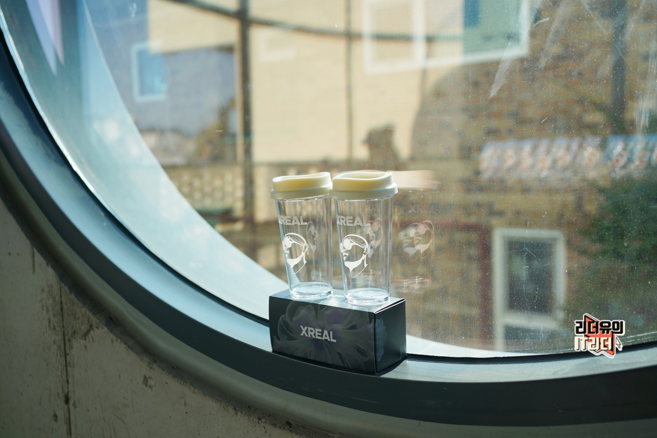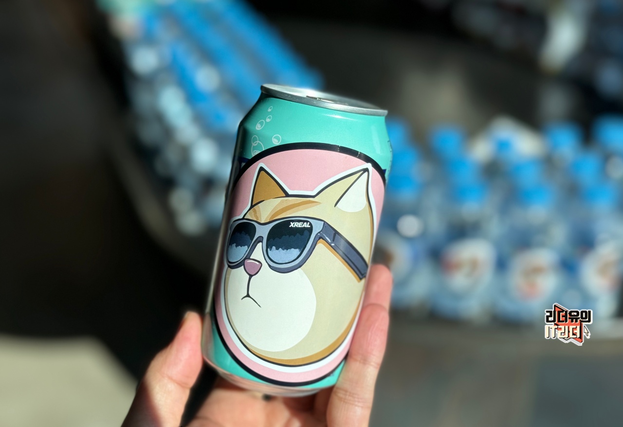 센스있게 꾸며진 음료의 모습 입니다. 엑스리얼 에어2를 착용하고 있는 고양이의 모습이 너무나 귀엽죠