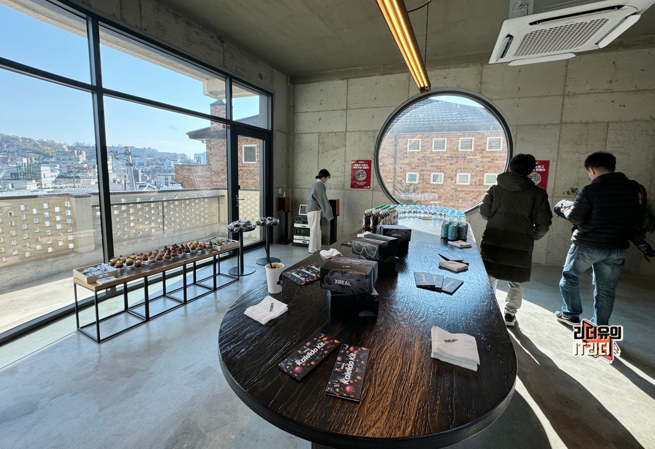 2층 공간에는 엑스리얼 에어2와 함께 즐길 수 있는 커피, 음료, 간단한 다과들이 준비되어 있었습니다.