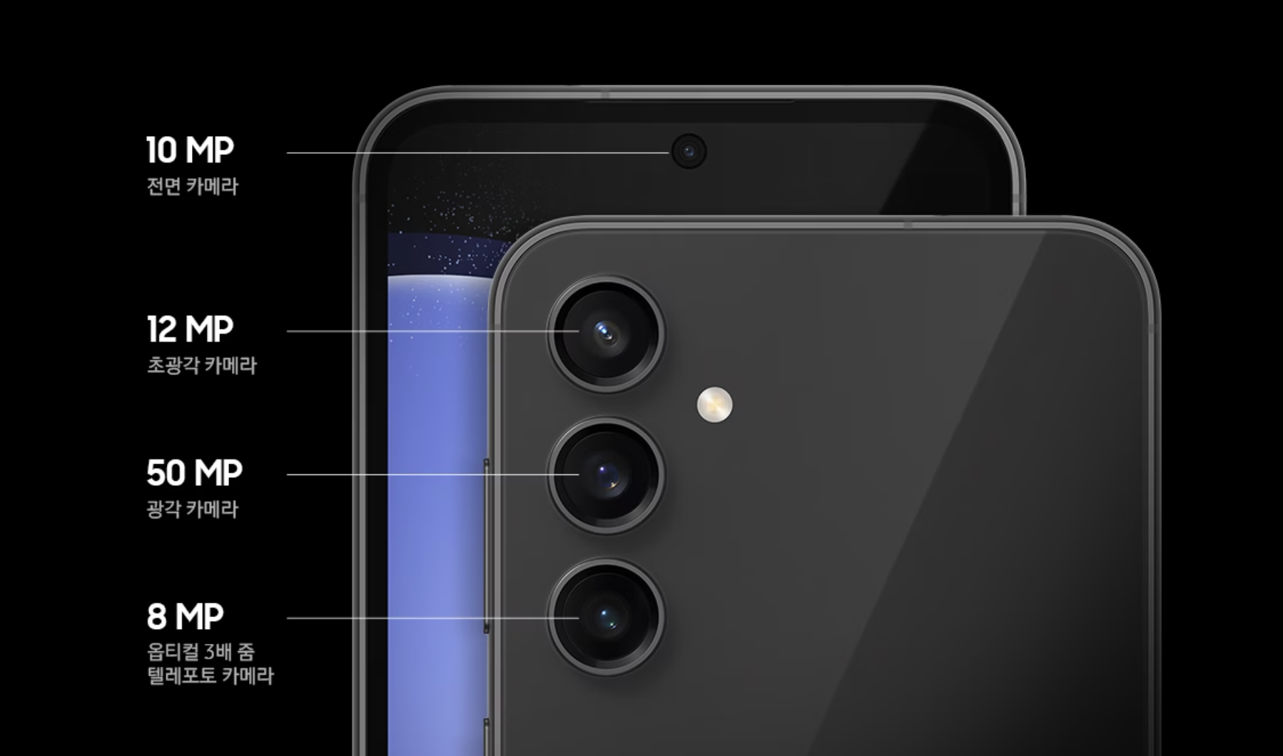 삼성 갤럭시S23 FE 카메라는 기존 갤럭시S23 카메라 보다는 조금 스펙이 낮아졌습니다. 메인 카메라는 5000만 화소로 같고 초광각도 1200만 화소로 같지만 망원의 경우 기존에 1000만 화소였는데 800만 화소로 낮아졌습니다. 카메라 스펙을 조금 낮게 하여 가격 경쟁력을 올렸다고 보시면 됩니다.