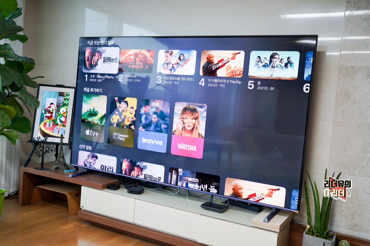 그리고 채널 및 앱 메뉴가 생겼습니다. 구독하고 있는 채널 및 앱을 바로 접근할 수 있게 지원하는 변화입니다. 디즈니플러스, 티빙이 나오고 있죠.