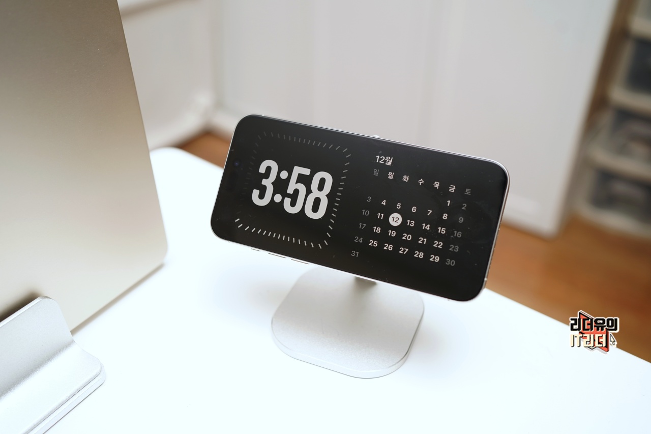 아이폰 iOS17.2 위젯에 들어간 시계 디자인이 스탠바이 기능에도 추가되었습니다. 시계와 달력을 조합하니 잘 어울리네요.