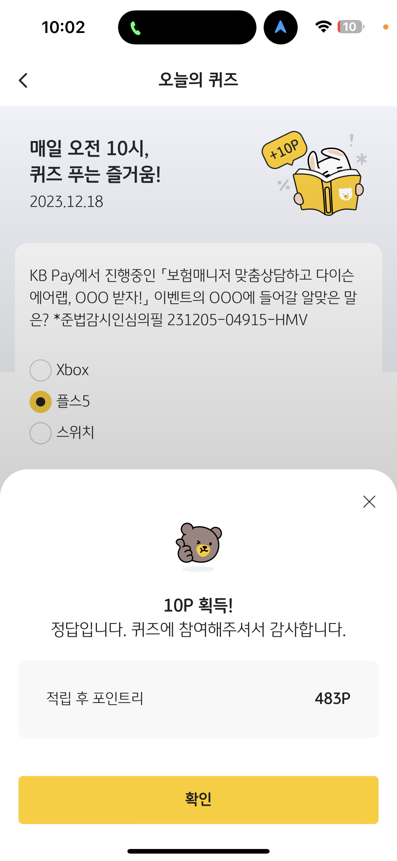 KB Pay 오늘의 퀴즈 정답은 플스5 입니다.