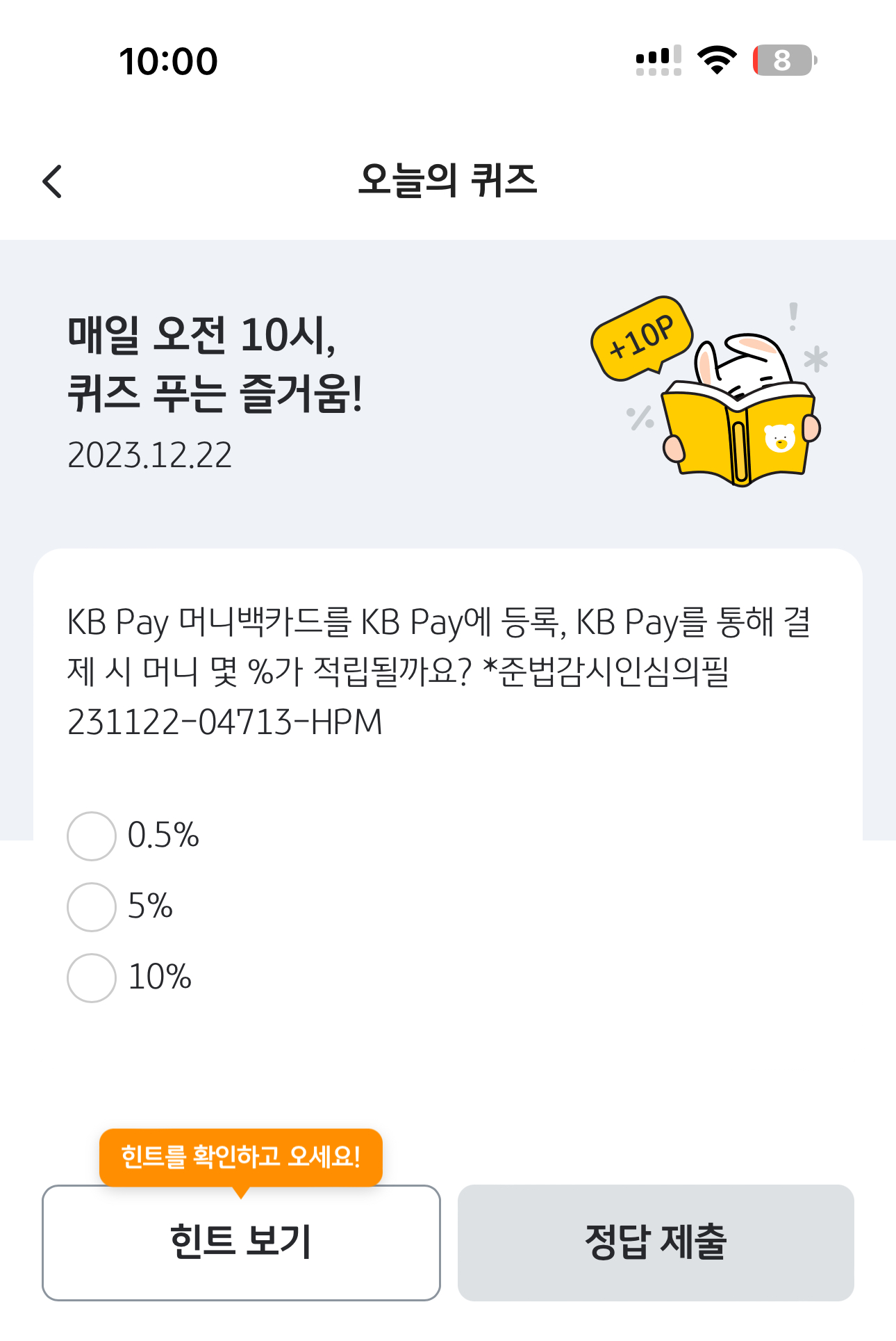 KB Pay 오늘의 퀴즈 정답은 5% 입니다