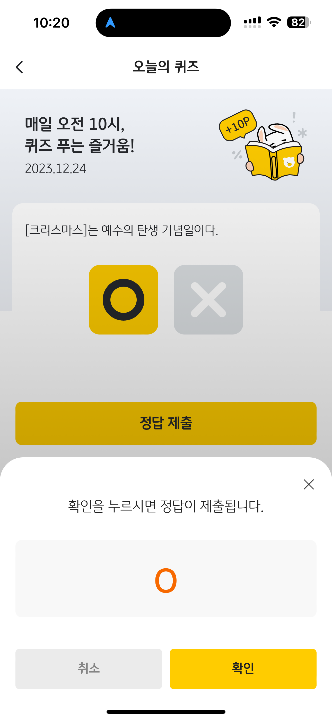 KB Pay 오늘의 퀴즈 정답은 O 입니다