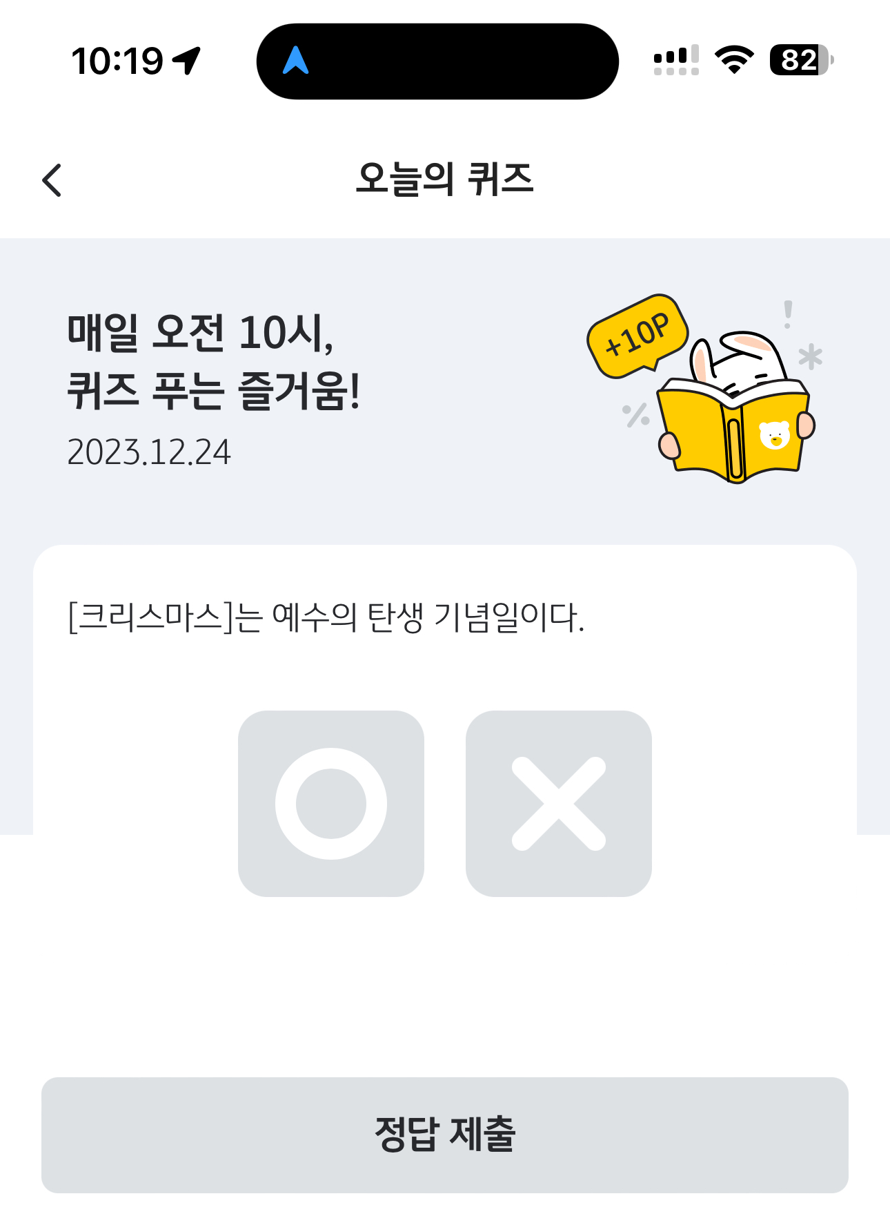 KB Pay 오늘의 퀴즈 12월 24일 정답(크리스마스는 예수의 탄생 기념일이다.)
