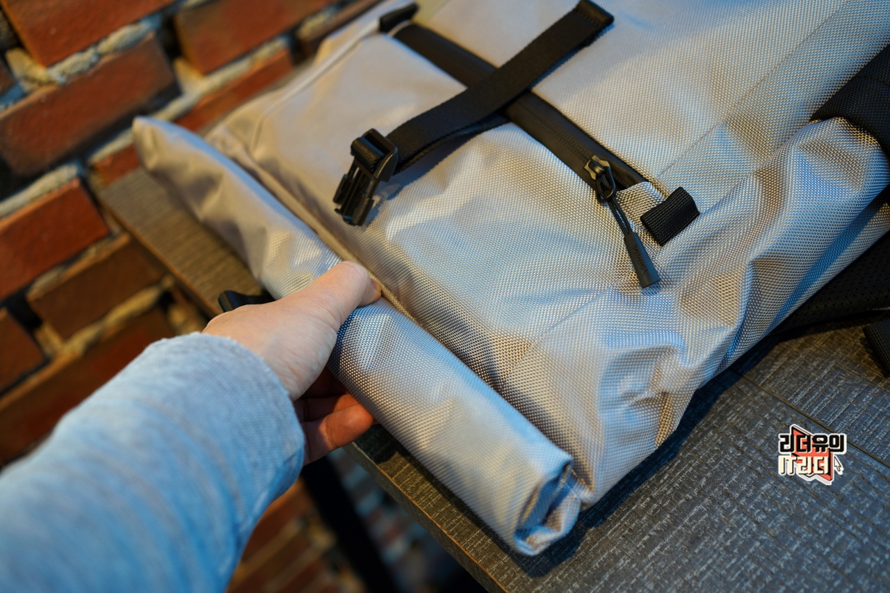 탐탁(TOMTAC) 네비게이터 롤탑 백팩의 가장 큰 특징은 가방의 덮개 부분이 말 수 있는 롤탑 구조로 되어 있다는 것입니다. 접어서 다닐 수도 있고 말아서 다닐 수도 있고 때로는 다 펼쳐서 다닐 수 있는 변신형 백팩입니다.