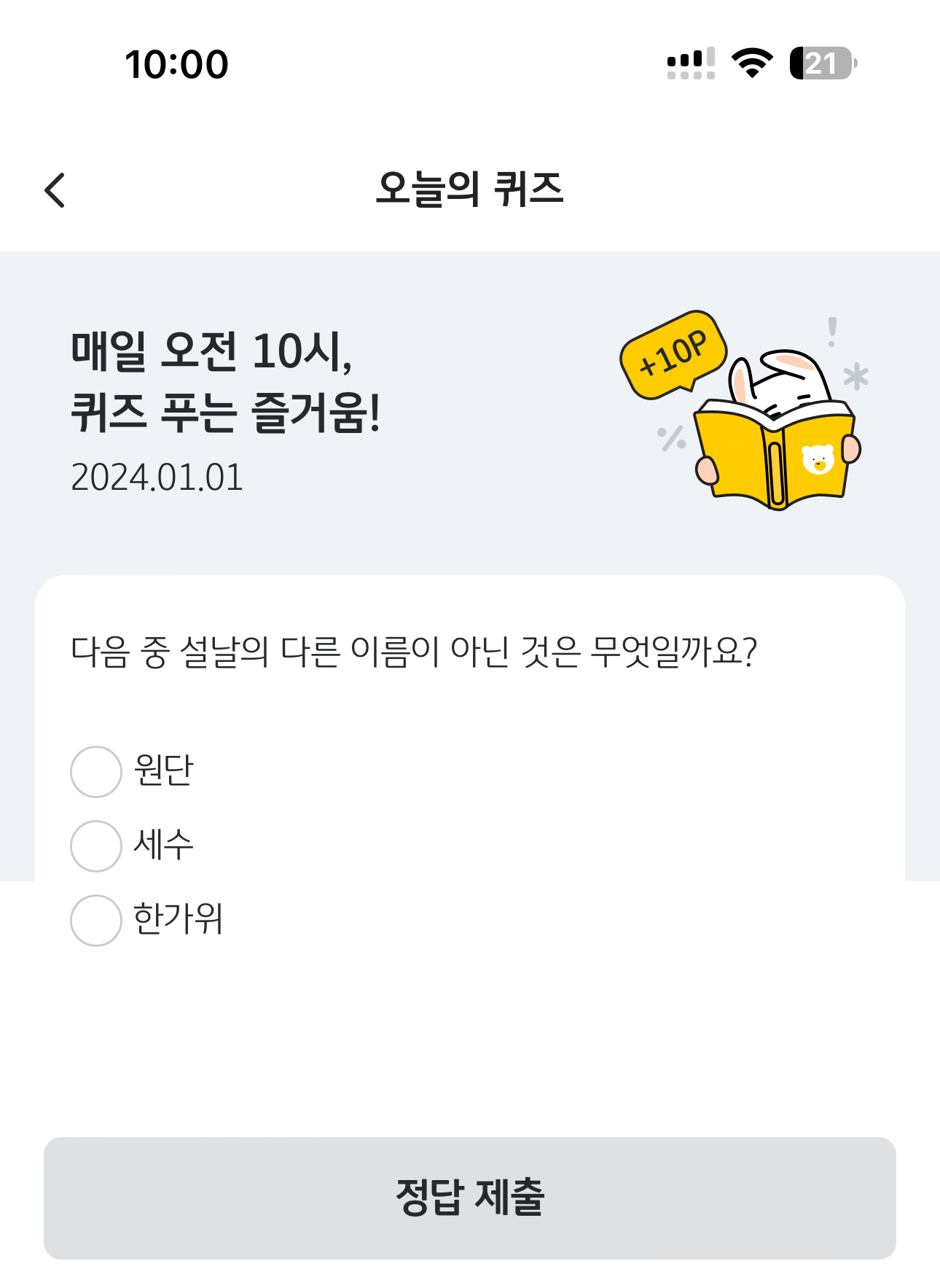 KB Pay 오늘의 퀴즈 1월 1일 정답(다음 중 설날의 다른 이름이 아닌 것은 무엇일까요?)