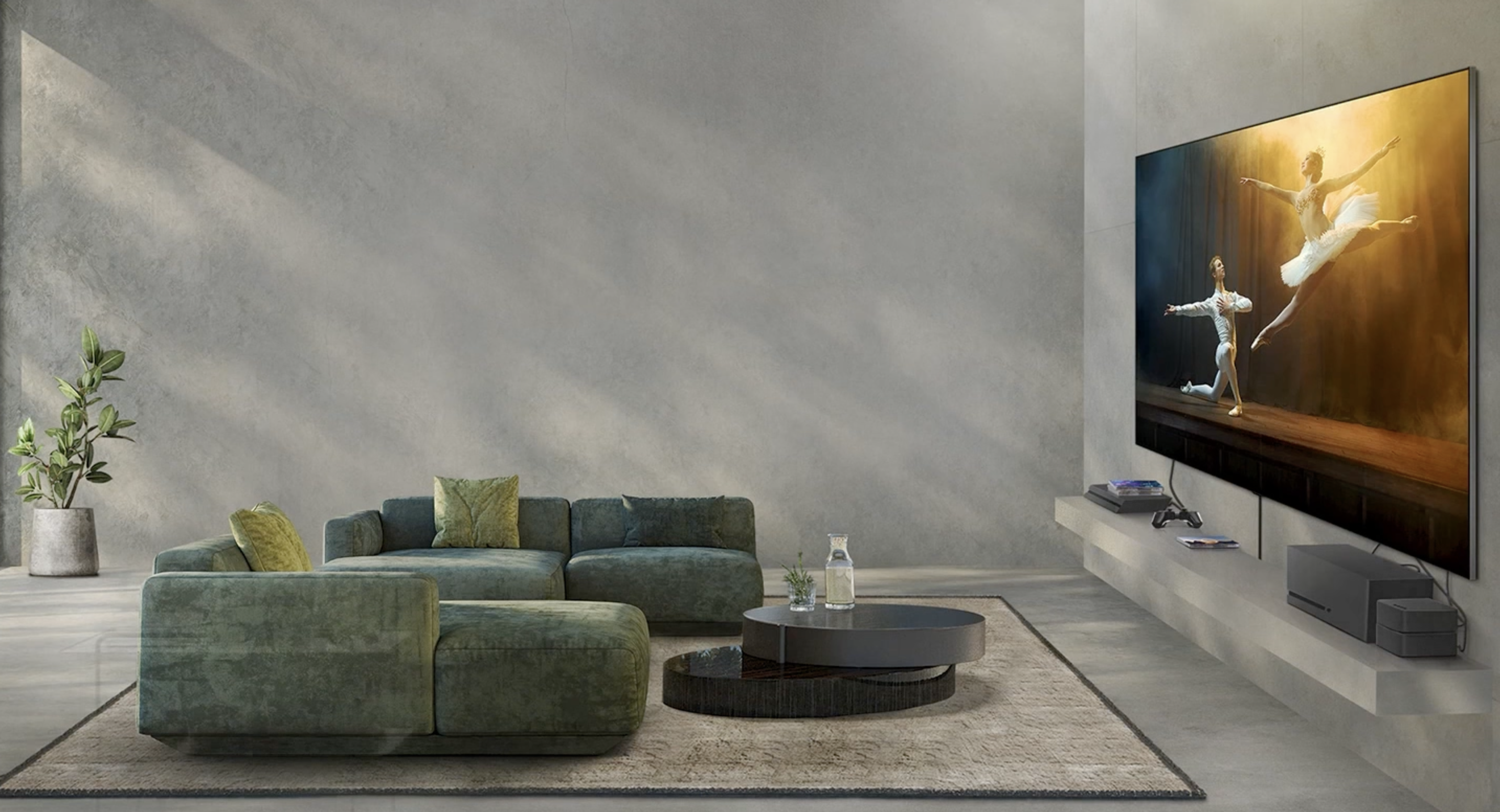 그리고 인공지능 음향 기술은 2채널 음원을 가상의 11.1.2 채널까지 변환해 풍성한 음향을 구현하게 됩니다. AI가 목소리를 주변 소리와 구분해 또렷하게 보정하고 화면 아래쪽 스피커에서 발생하는 소리는 TV 화면 중앙에서 나오는 것처럼 자연스럽게 들려줍니다.