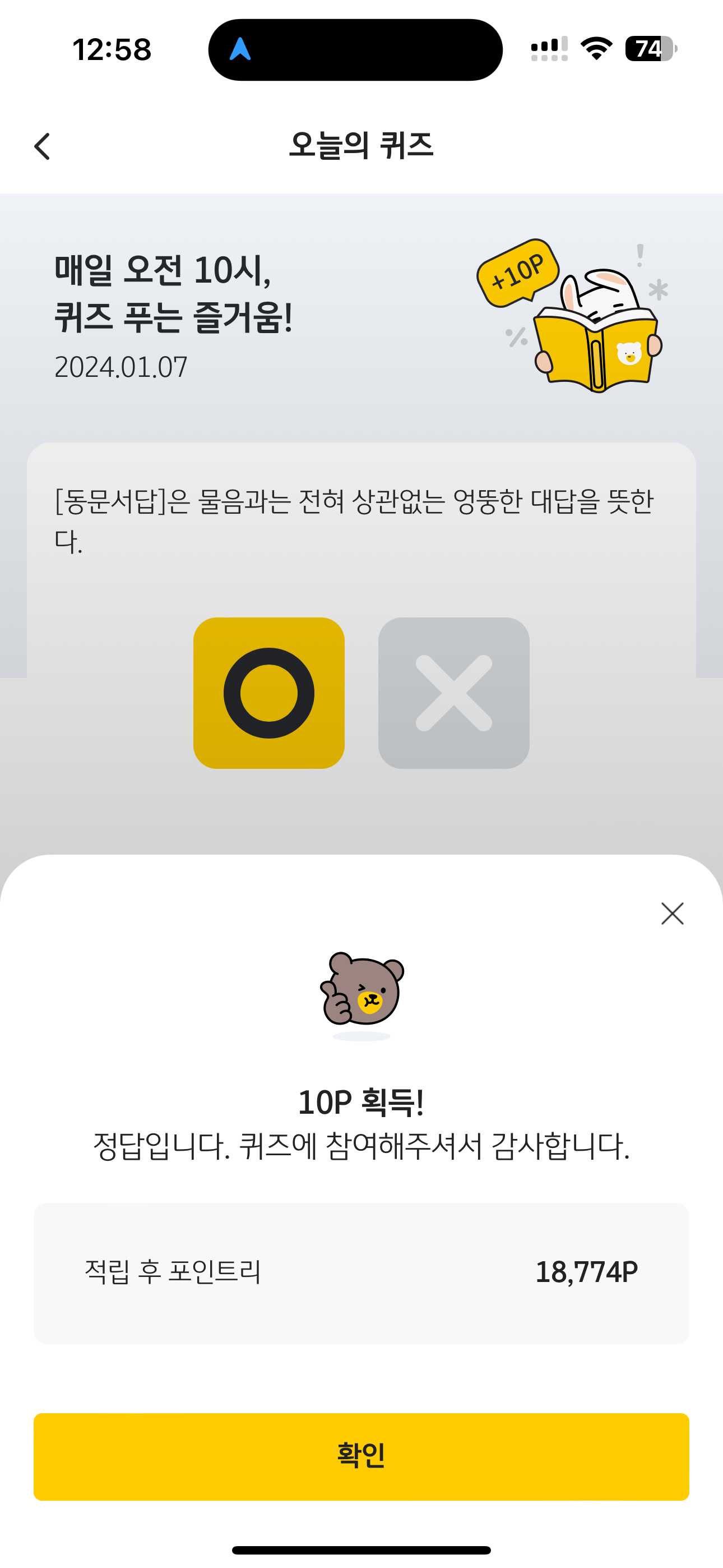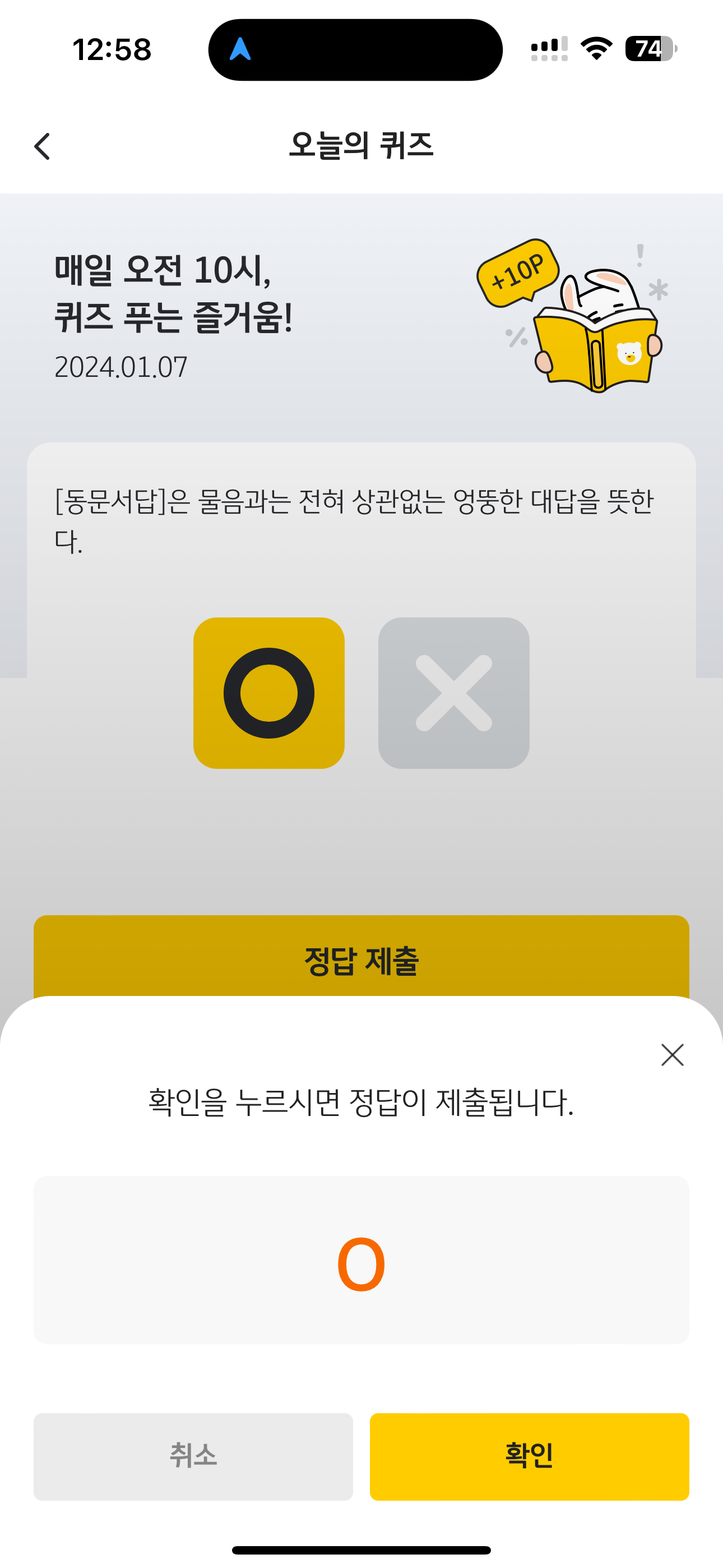 KB Pay 오늘의 퀴즈 정답은 O 입니다