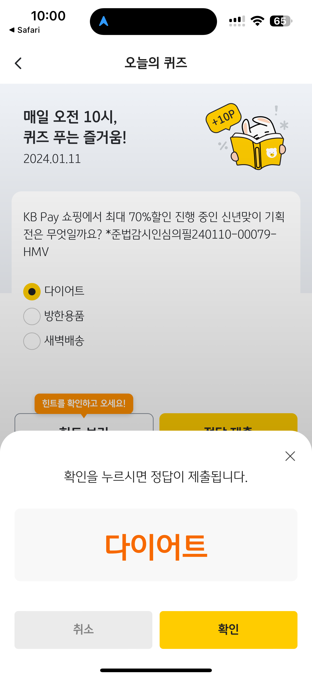 KB Pay 오늘의 퀴즈 정답은 다이어트입니다