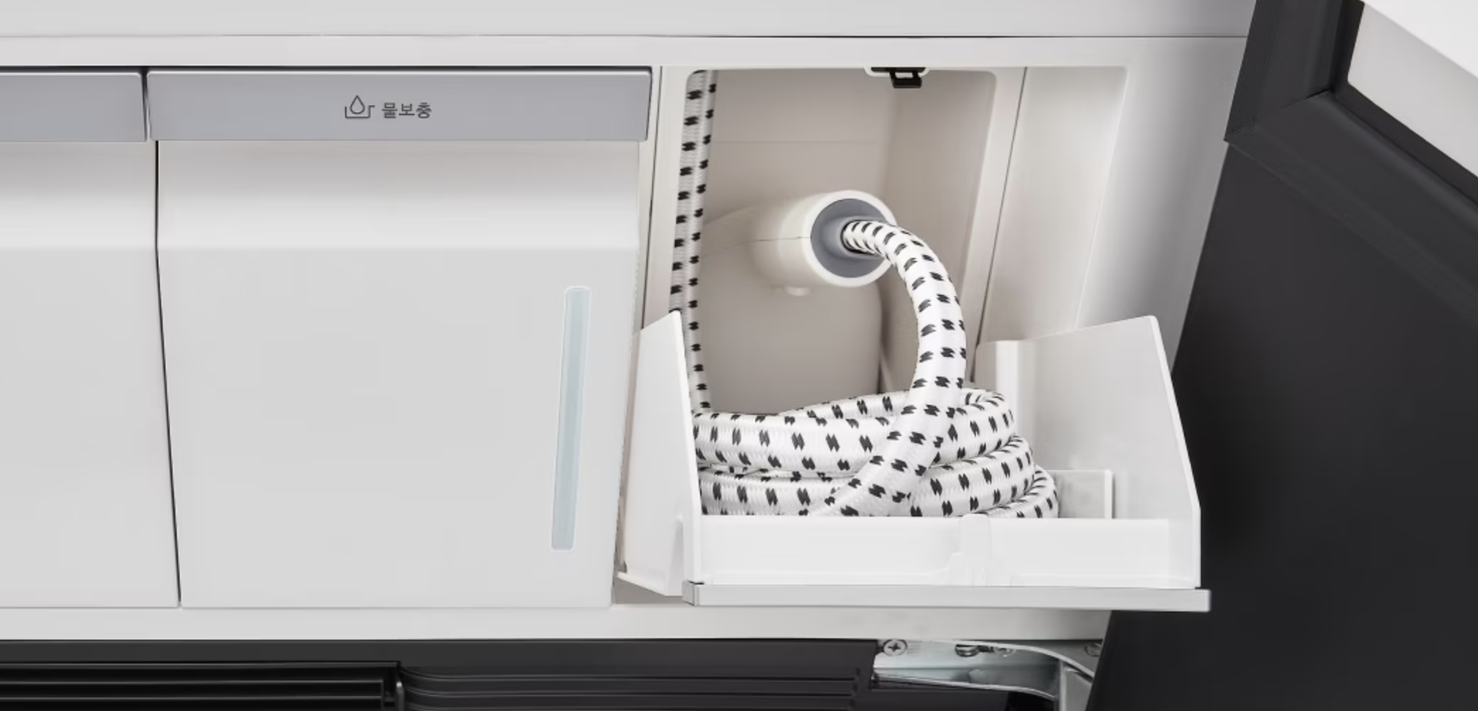 2024년 LG전자 올 뉴 스타일러는 핸디형 스팀 다리미인 '빌트인 고압 스티머'를 갖춘 것이 특징입니다. 스타일러 자체가 의류의 구김을 펴주는 효과가 있지만 완벽하게 주름을 펴주는 건 아닌데요. 이를 보완하기 위해 스팀 다리미를 넣어 다림질까지 할 수 있게 했습니다.