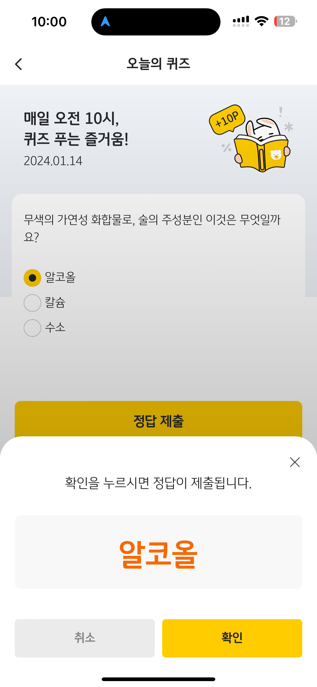 KB Pay 오늘의 퀴즈 정답은 알코올 입니다