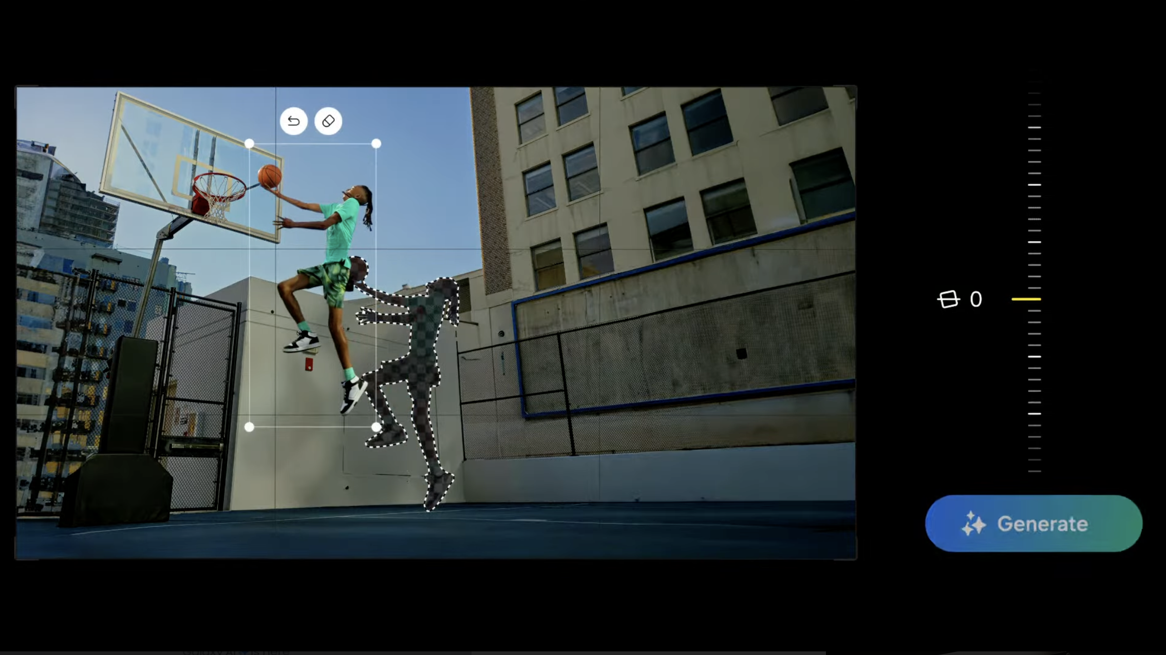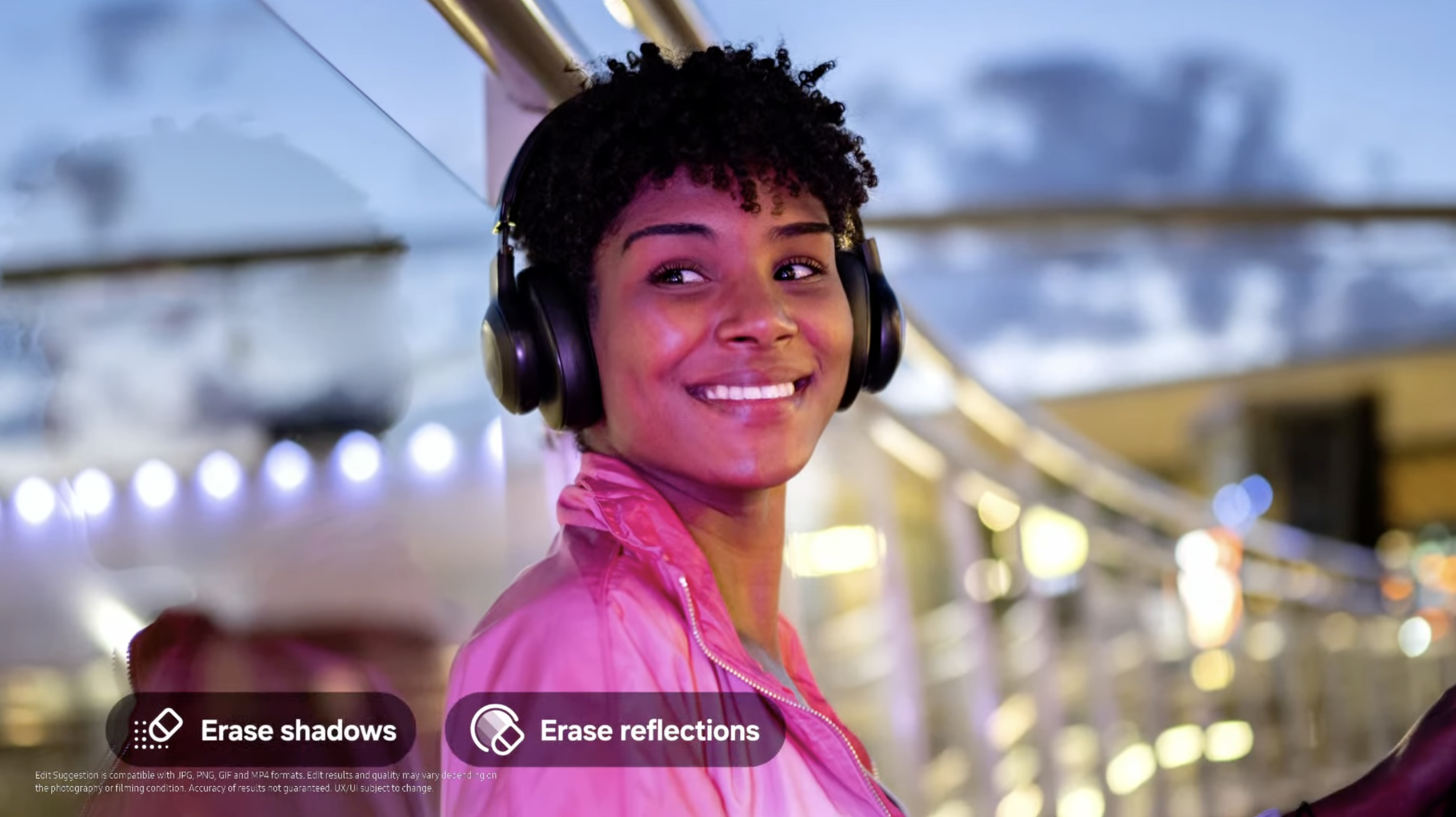 그리고 생성형 편집 기능이 생겼습니다. 사진이 조금 기울거나 배경 화면이 잘려나간 경우 AI가 잘려나간 사물의 일부 이미지를 메꾸고 자연스러운 사진으로 완성해 줍니다. 그리고 사진 속 피사체를 이동하거나 크기를 조정할 수 있습니다.
