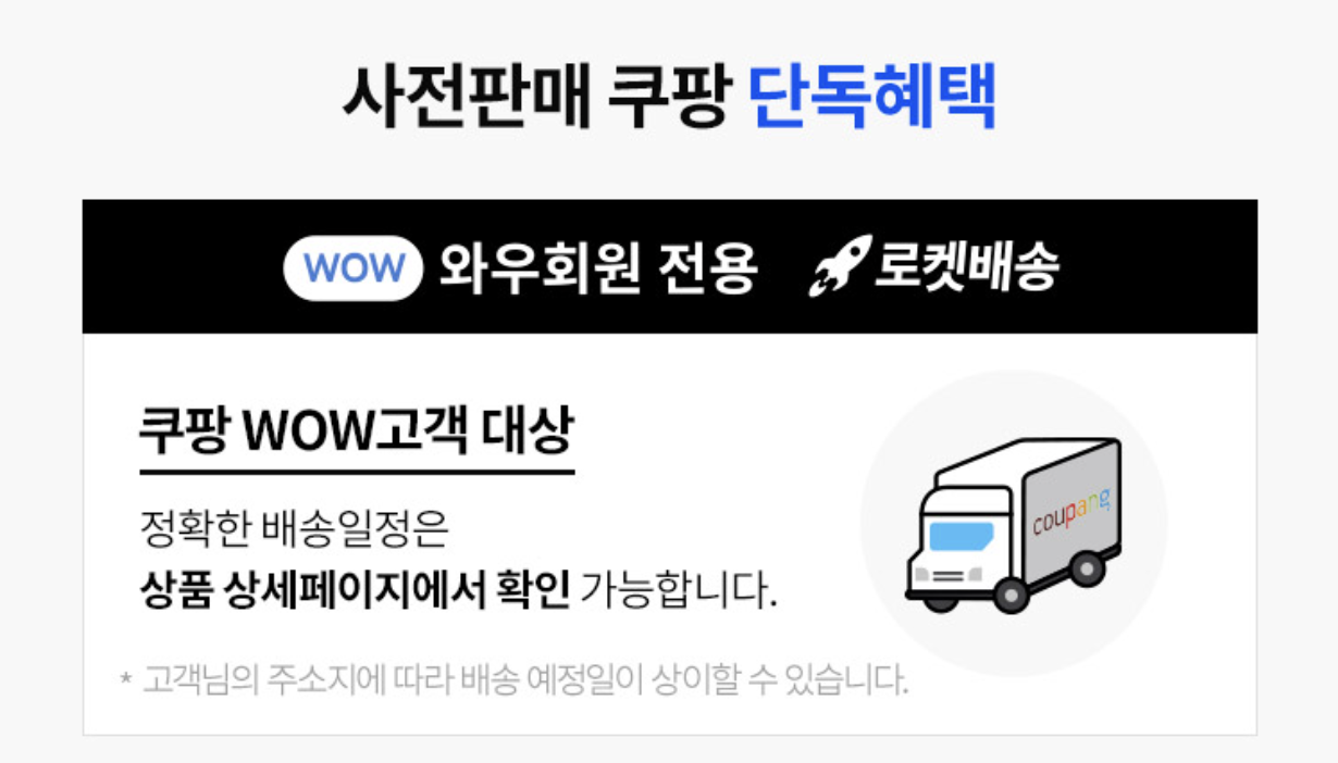 쿠팡의 장점은 배송이죠. 로켓 배송으로 누구보다 빨리 안전하게 배송 받을 수 있습니다.