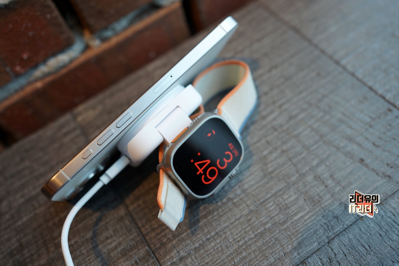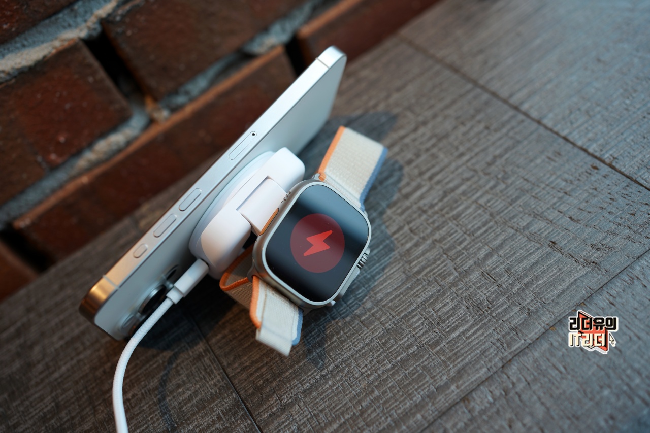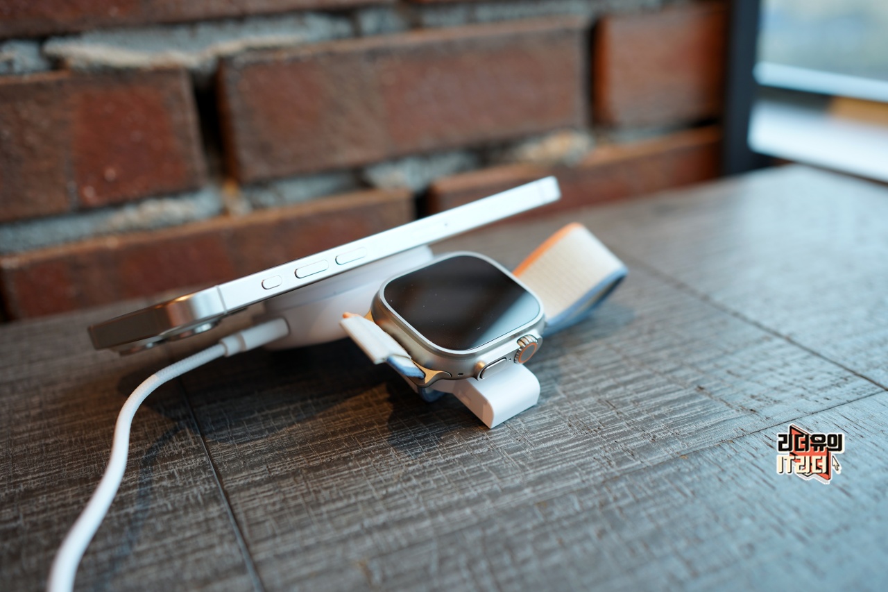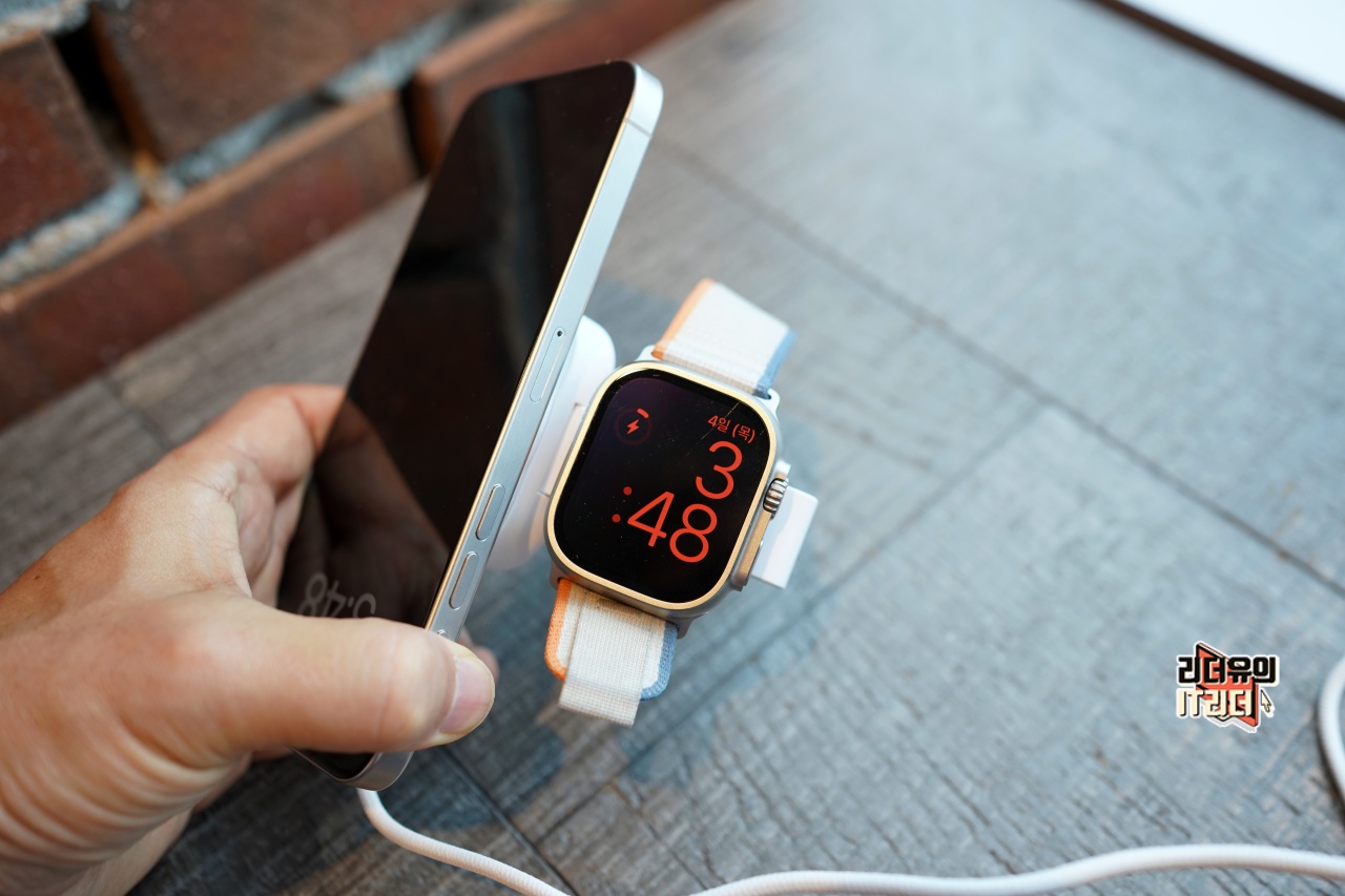 젠스 2in1 맥세이프 아이폰 애플워치 휴대용 듀얼충전기 사용 모습