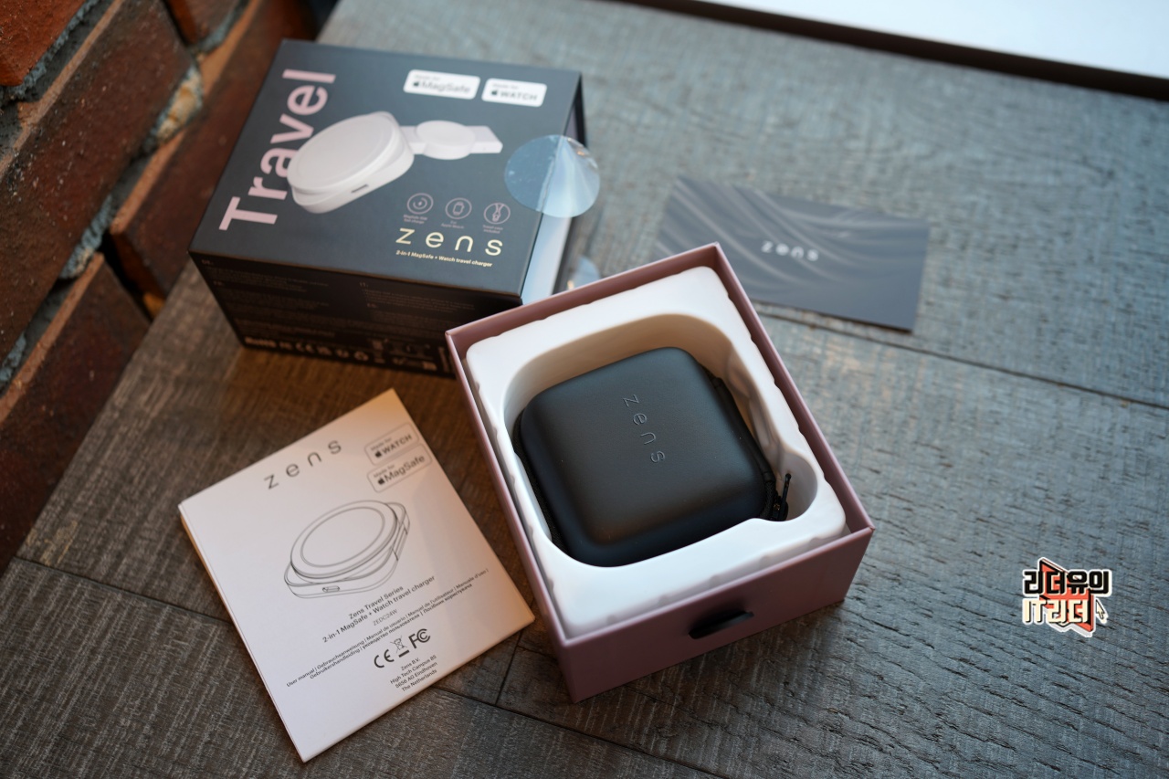 zens 젠스 2in1 맥세이프 아이폰 애플워치 휴대용 듀얼충전기 패키지를 개봉한 모습입니다. 휴대용 충전기라 기본적으로 전용 케이스에 담겨 있습니다.