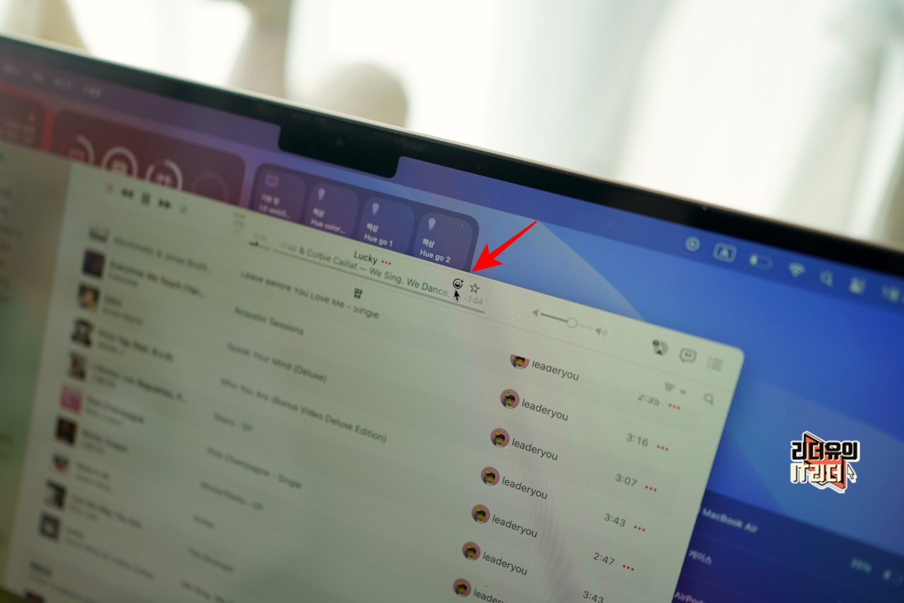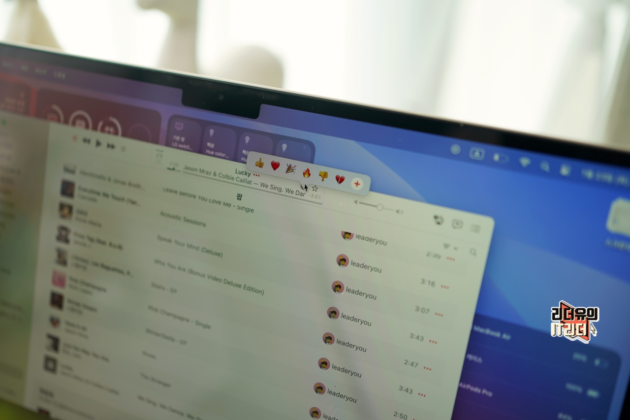 그리고 상단의 플레이바에 보면 이모티콘 아이콘이 생긴걸 볼 수 있습니다. 이는 추가된 음악에 대한 반응을 보일 수 있는 기능입니다.