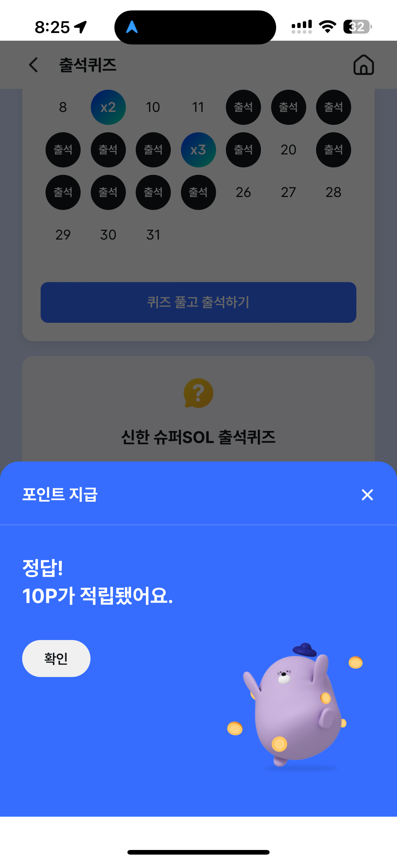 신한 슈퍼SOL 출석퀴즈 정답은 O 입니다