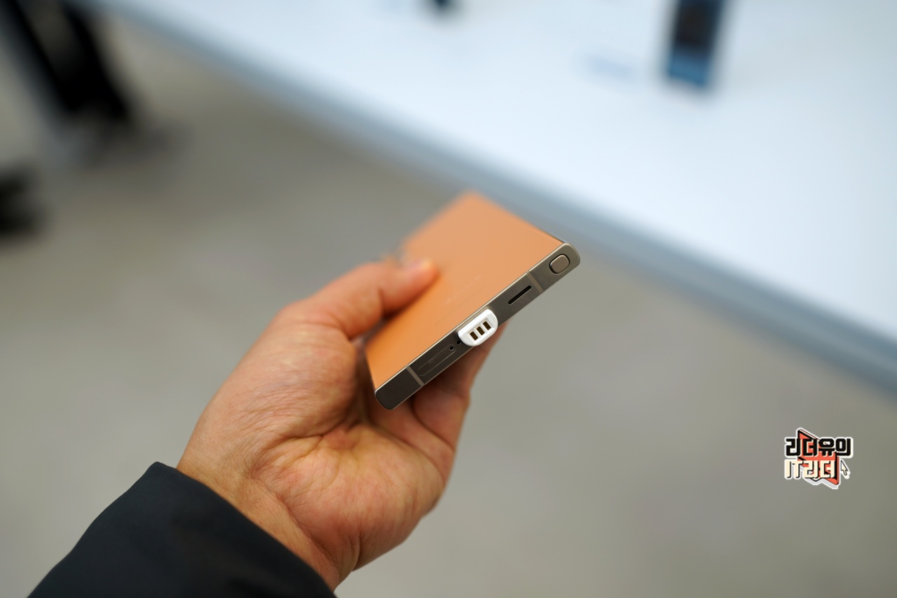 삼성 갤럭시S24 울트라 티타늄 오렌지 색상은 진한 오렌지 색상에 테두리 프레임은 샴페인 골드 같은 골드빛의 색상으로 개성있는 디자인을 보여주고 있습니다. 과감한 색상이라 다소 호불호는 갈릴 수 있으나 톡톡 튀는 화사함을 잘 보여주는 색상입니다. 전면에서 봤을때는 테두리 라인에 골드 라인이 보여 포인트되는 컬러의 매력을 느낄 수 있습니다.