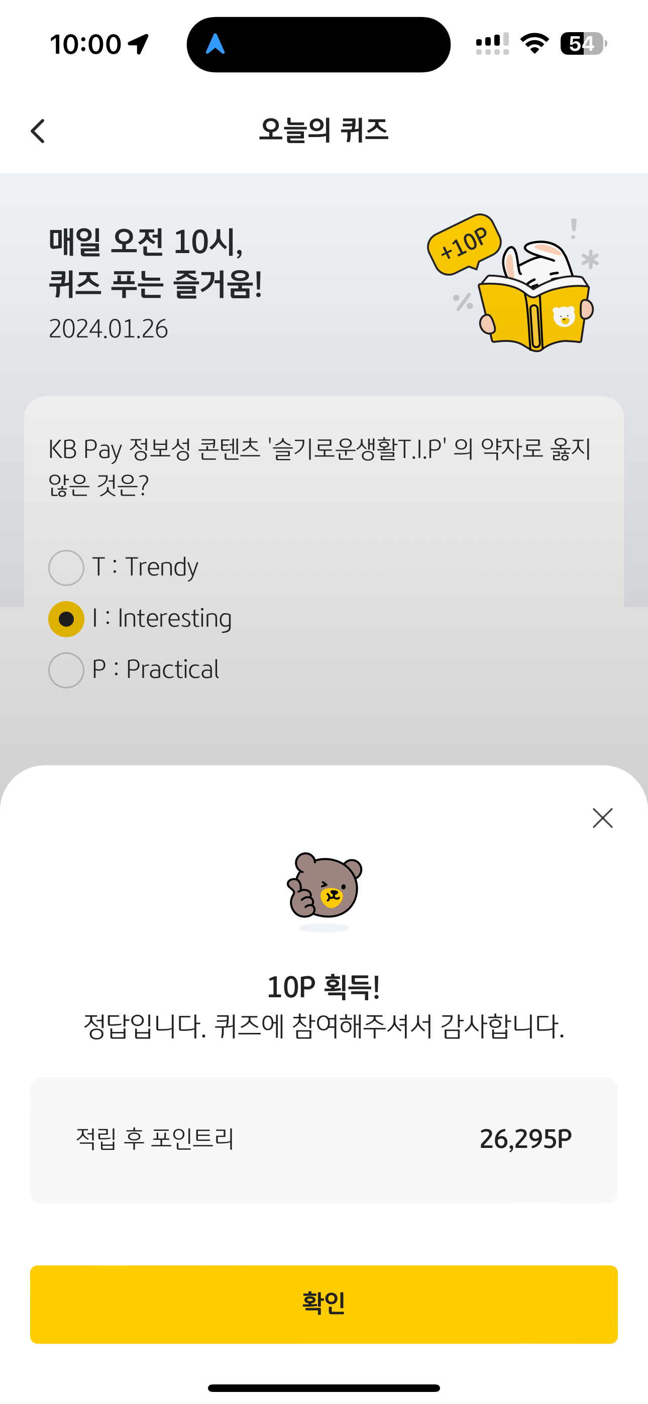 KB Pay 오늘의 퀴즈 정답은 I : Interesting 입니다