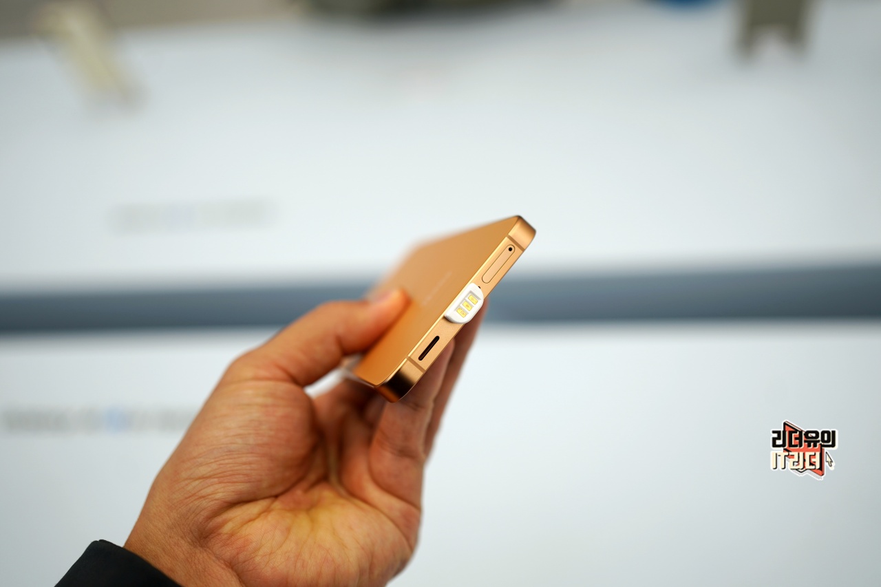 삼성 갤럭시S24 샌드스톤 오렌지 색상은 진한 오렌지 색상으로 약간 황토색에 가까운 색상입니다. 그래서 살짝 호불호는 갈릴 것으로 보이는데요. 그래도 과감하게 화려한 컬러가 인상적입니다. 테두리 프레임은 골드빛의 반짝거리는 효과를 볼 수 있어 포인트 되는 효과도 있습니다. 전면에서 봤을때도 골드 라인이 보여 화려한 디자인을 볼 수 있습니다.