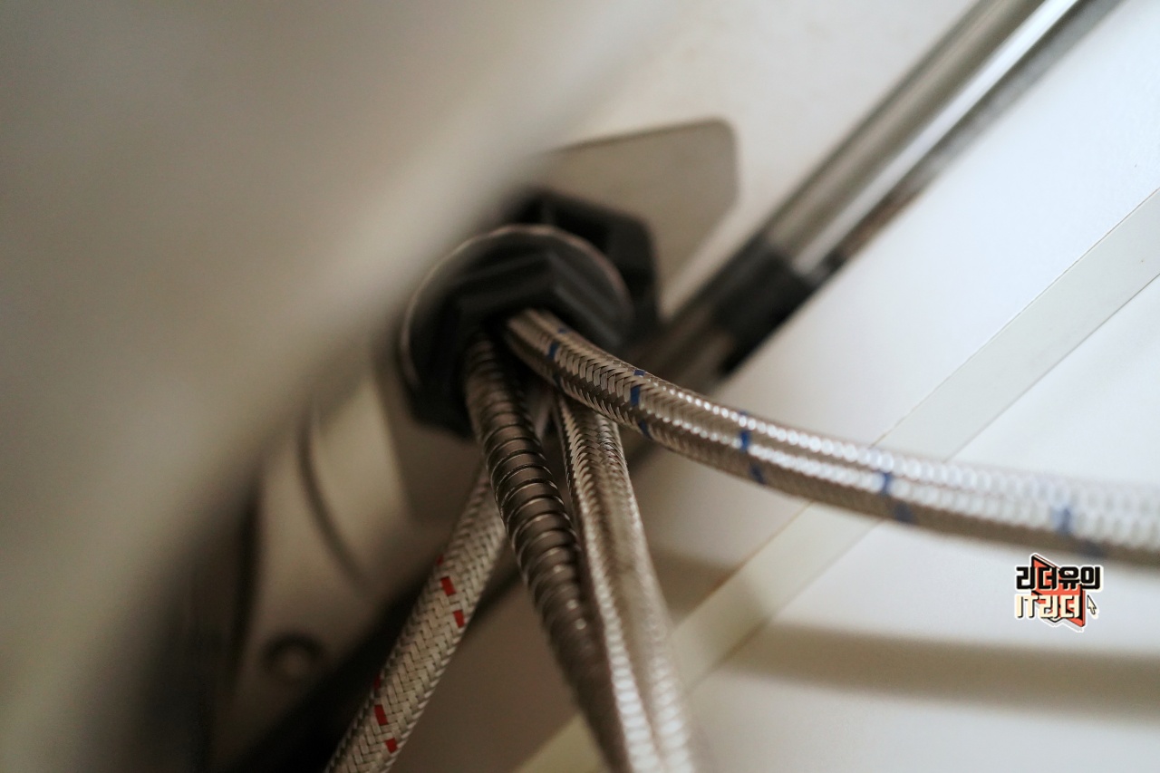 케이블을 밀어 넣고 아래 온수 케이블, 냉수 케이블을 장착하고 체결해 주면 됩니다.