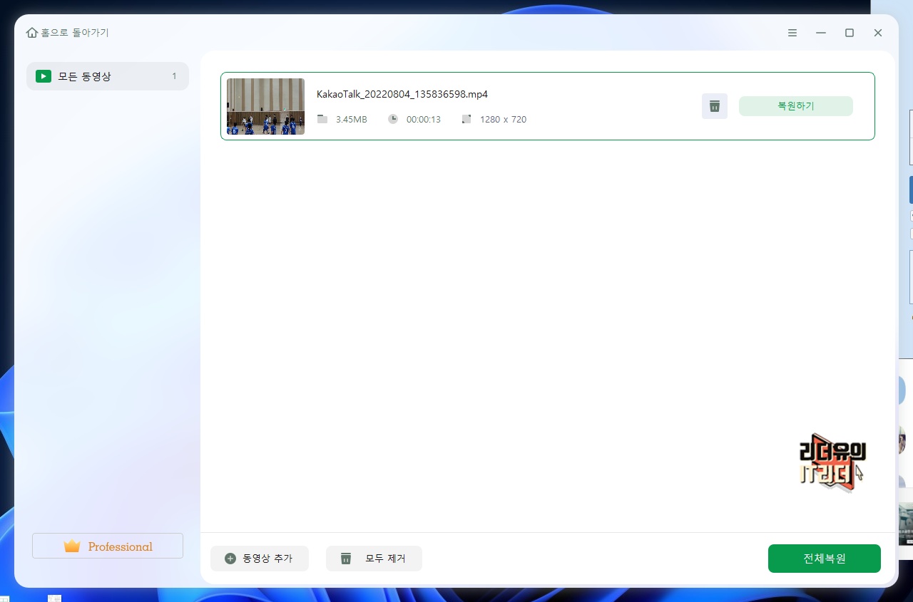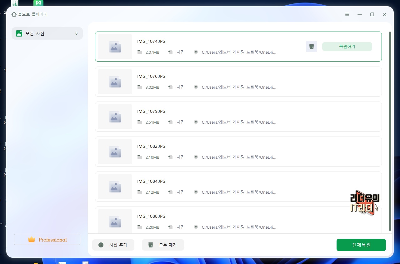 사진 파일도 동영상 파일과 마찬가지로 추가해서 복원하면 됩니다.